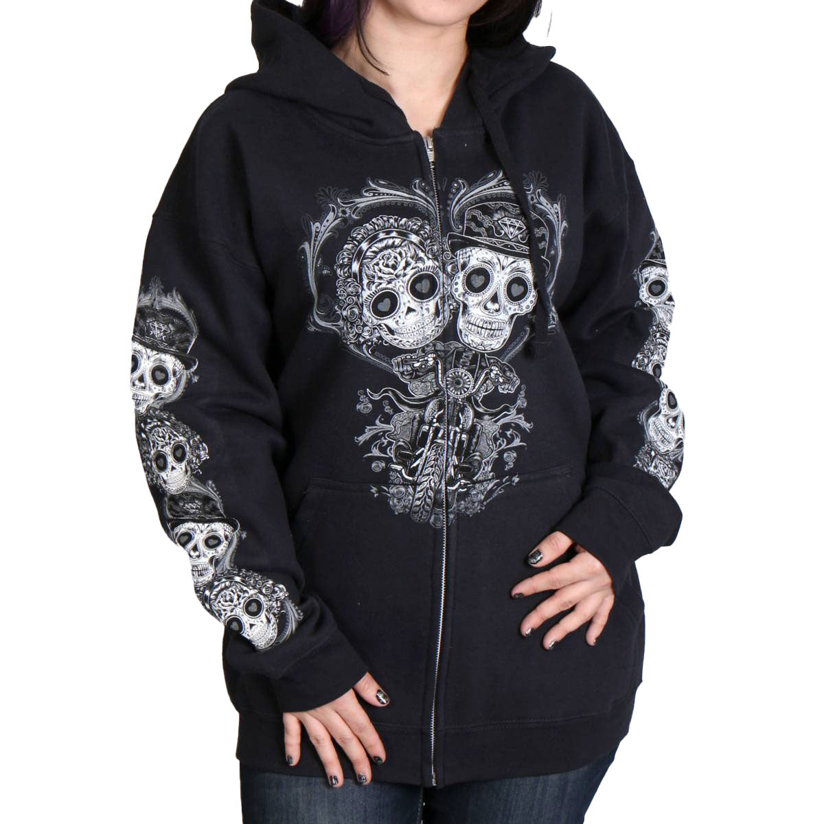 Hot Leathers GLZ4408 'Sugar Couple' Full Cut Zip Up Hoodie Black Sweat Shirt