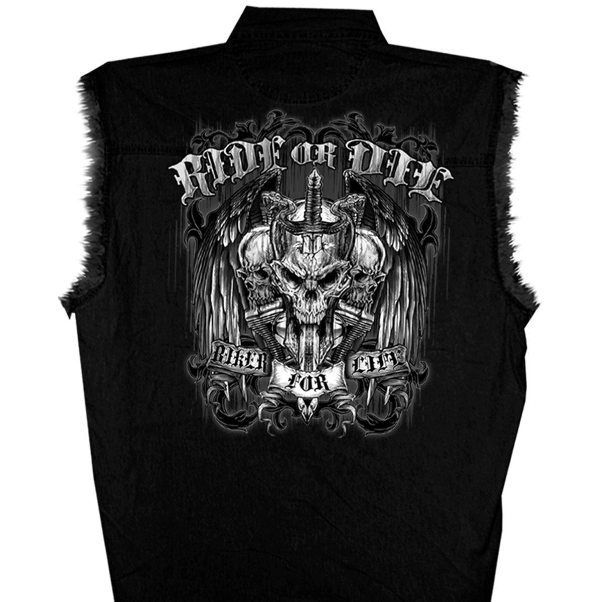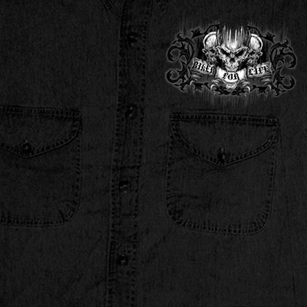 Hot Leathers GMD5015 Men's Black Ride or Die Skull Sleeveless Denim Button Shirt
