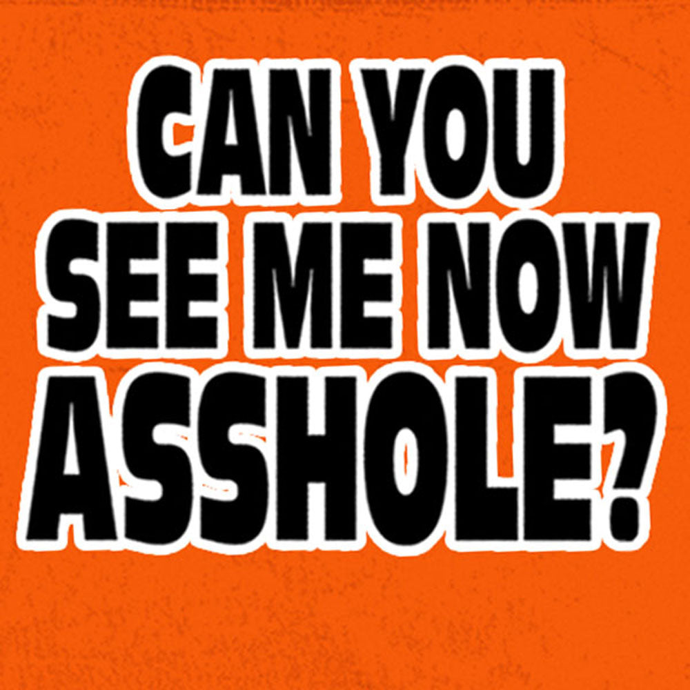 This Sleeveless Denim shirt comes in the color Orange and on the left chest just above the pocket states "BIKERS AGAINST DUMB DRIVERS" while the back really gets the message across with the bold text reading "CAN YOU SEE ME NOW ASSHOLE?" This shirt is constructed using high quality buttons down the front and contains two chest pockets with frayed detailing around the arm opening.