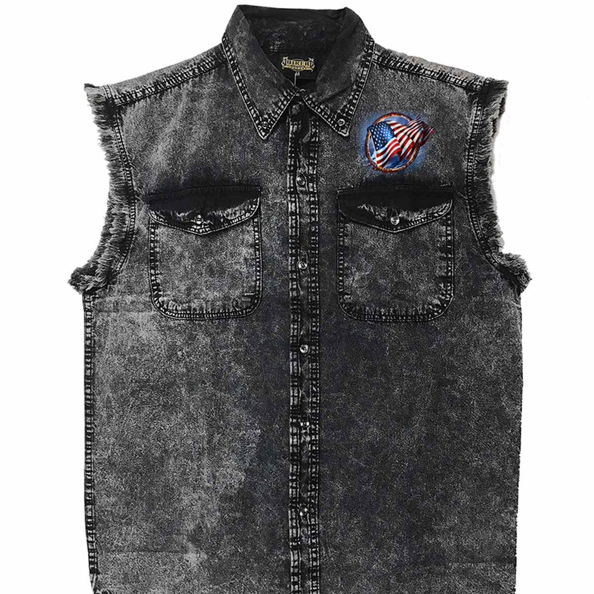 Hot Leathers GMD5472 Men's Hoop Eagle Dyed Sleeveless Denim Shirt