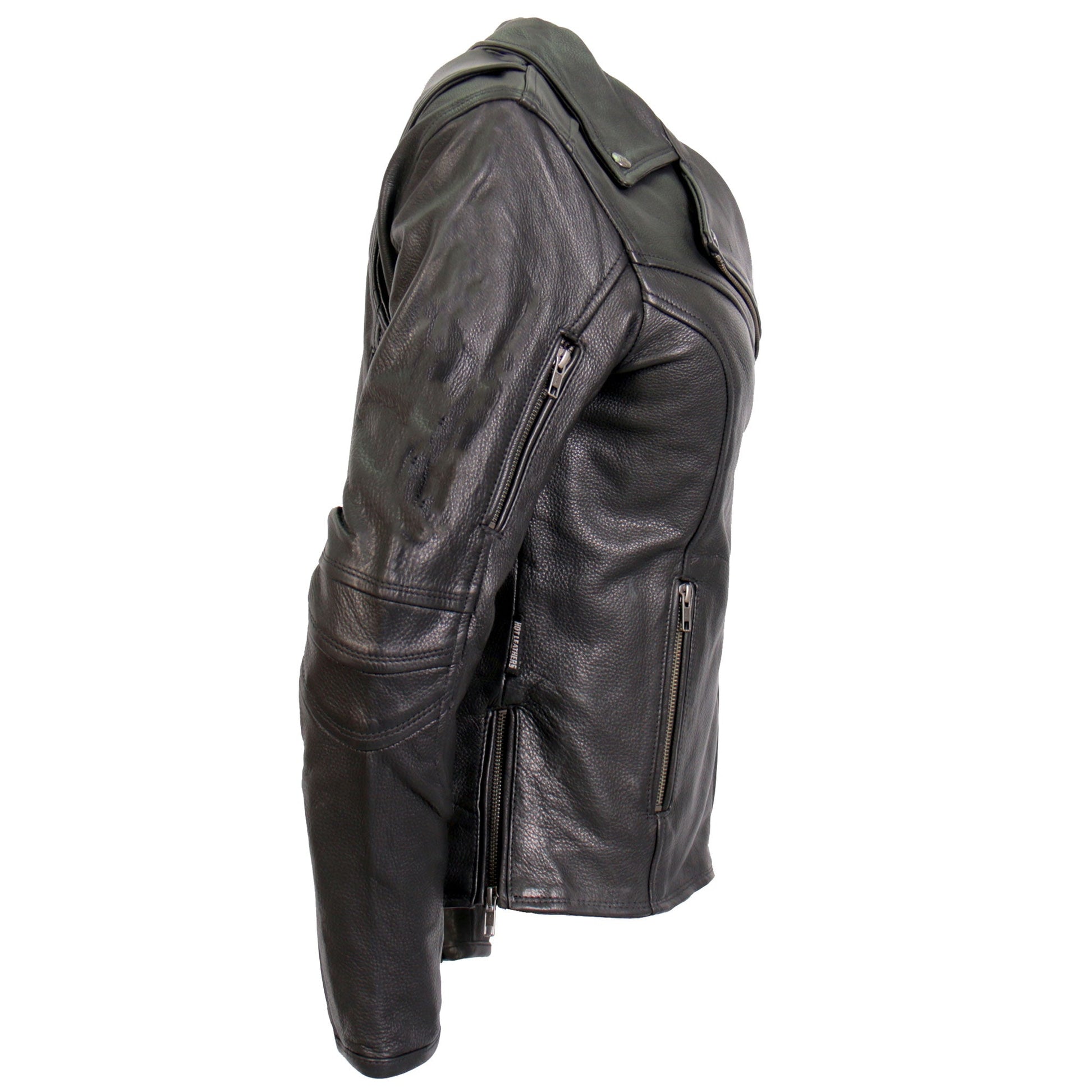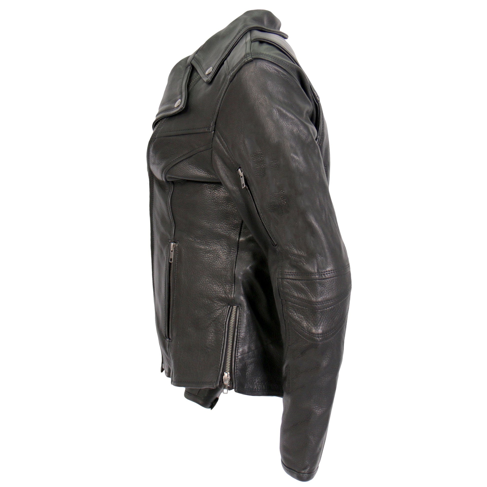 This Premium Naked Cowhide ladies jacket is classic and timeless. We have added a plush cotton flannel lining ,4 way vent system and side zipper adjustments.
