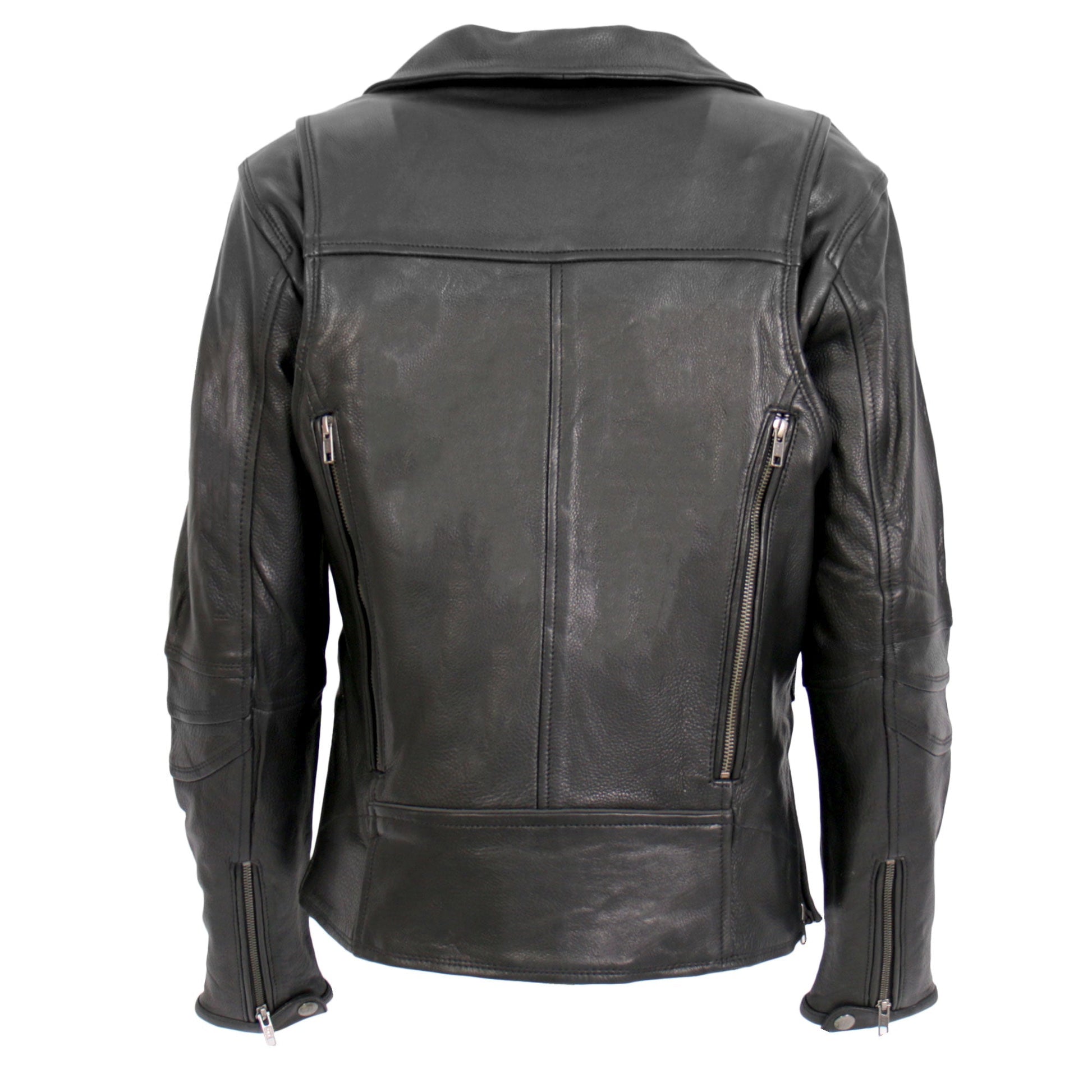 Hot Leathers JKL1034 Ladies Biker Black Leather Motorcycle Jacket with Plaid Flannel Lining