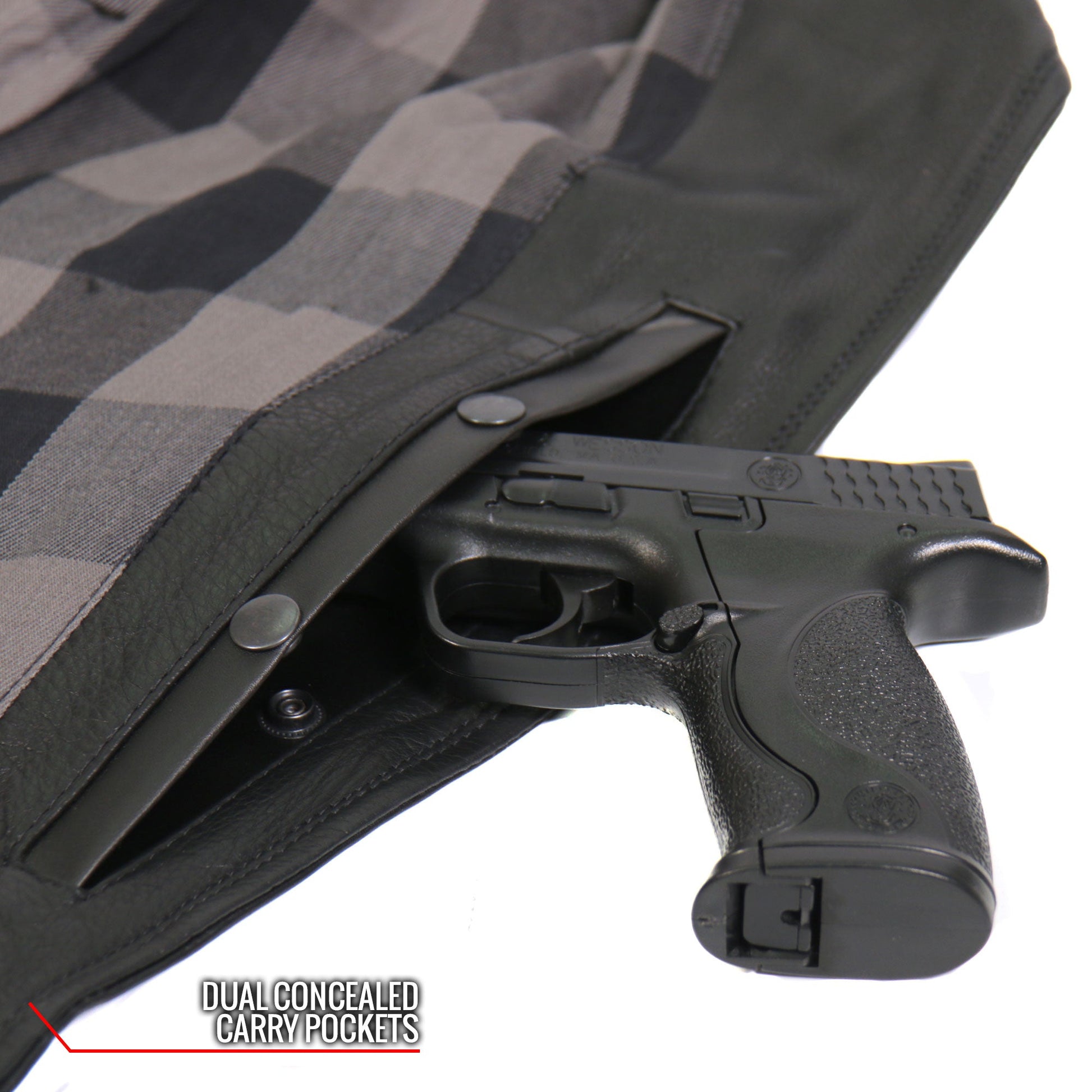 - Antiqued Silver Hardware, 2 Outside Zip Pockets , Dual Inside concealed carry pockets and one Snap Closure pocket for additional storage