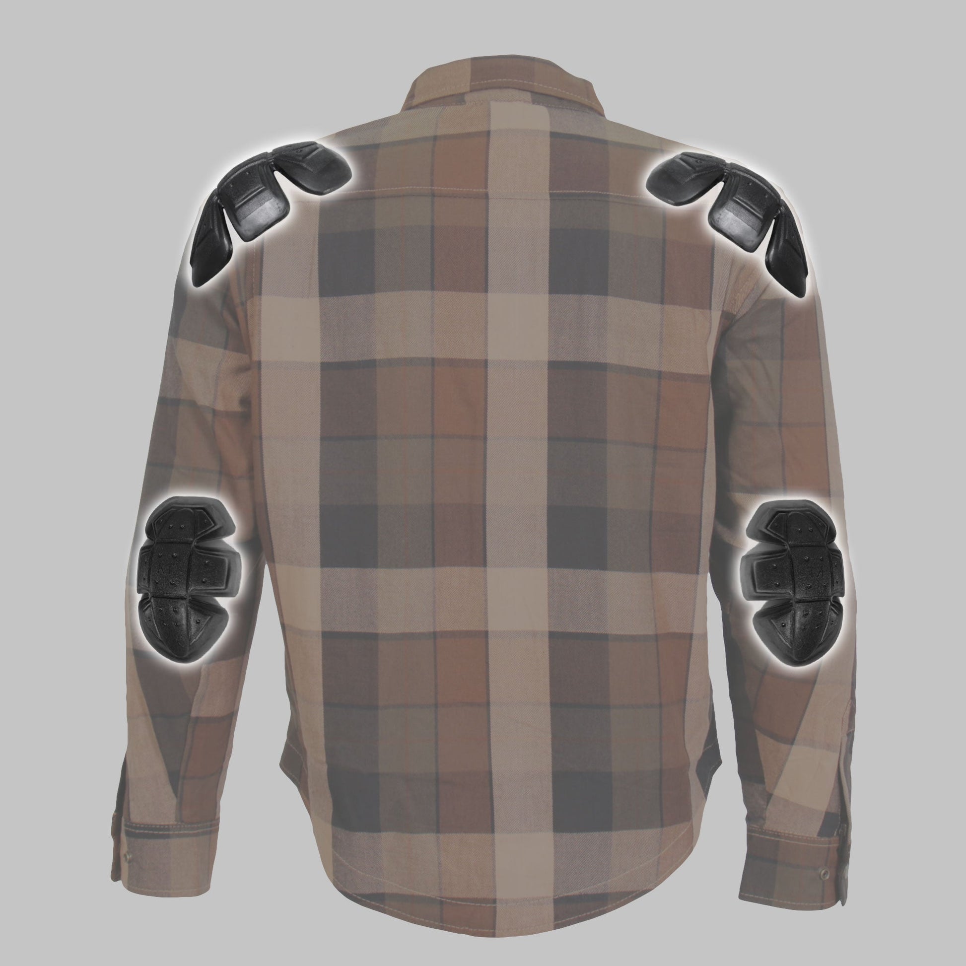 Hot Leathers JKM3007 Men's Motorcycle Black and Brown Armored Flannel Biker Shirt