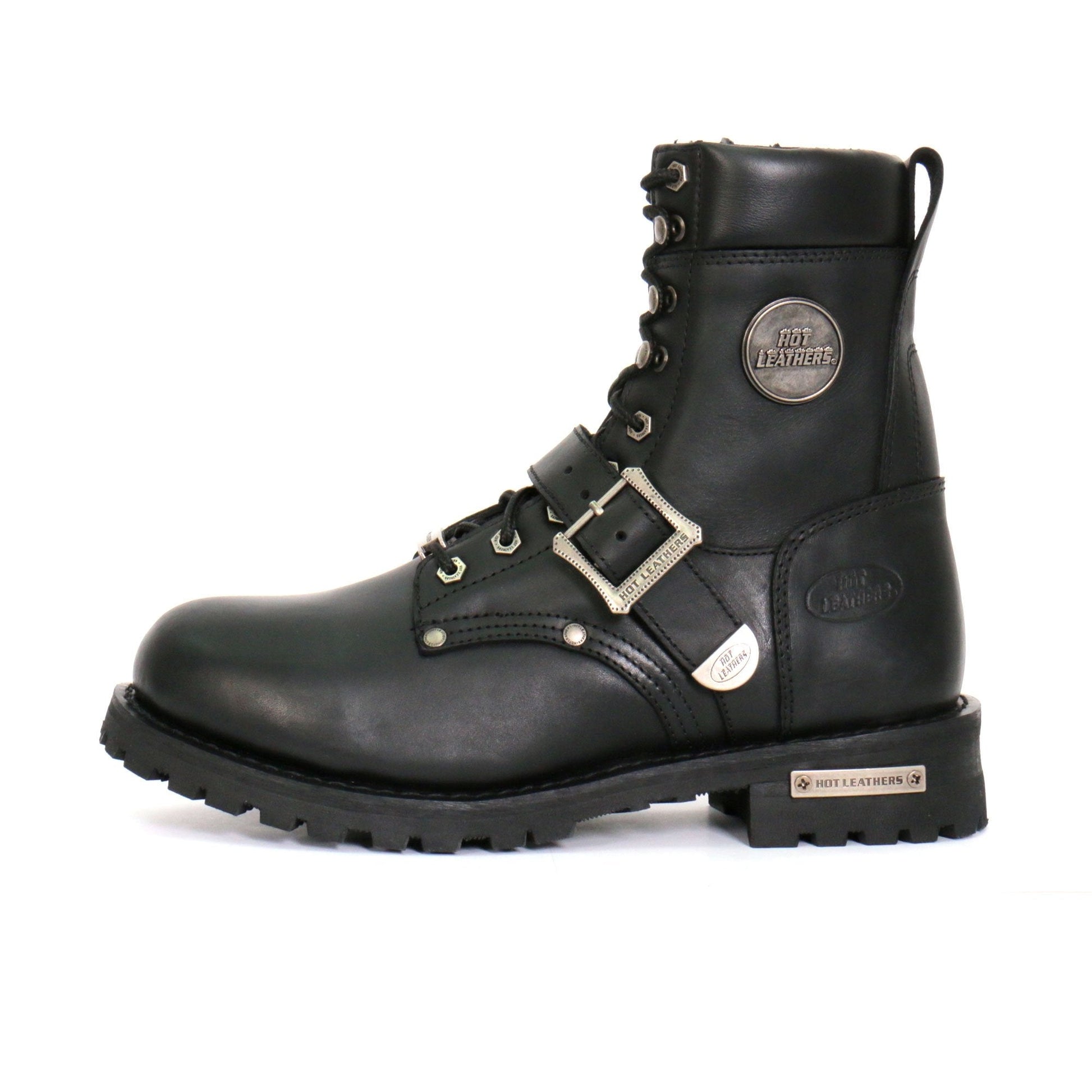 Hot Leathers Men's Wide Width Black 8-inch Logger Leather Boots with Adjustable Buckle BTM1006