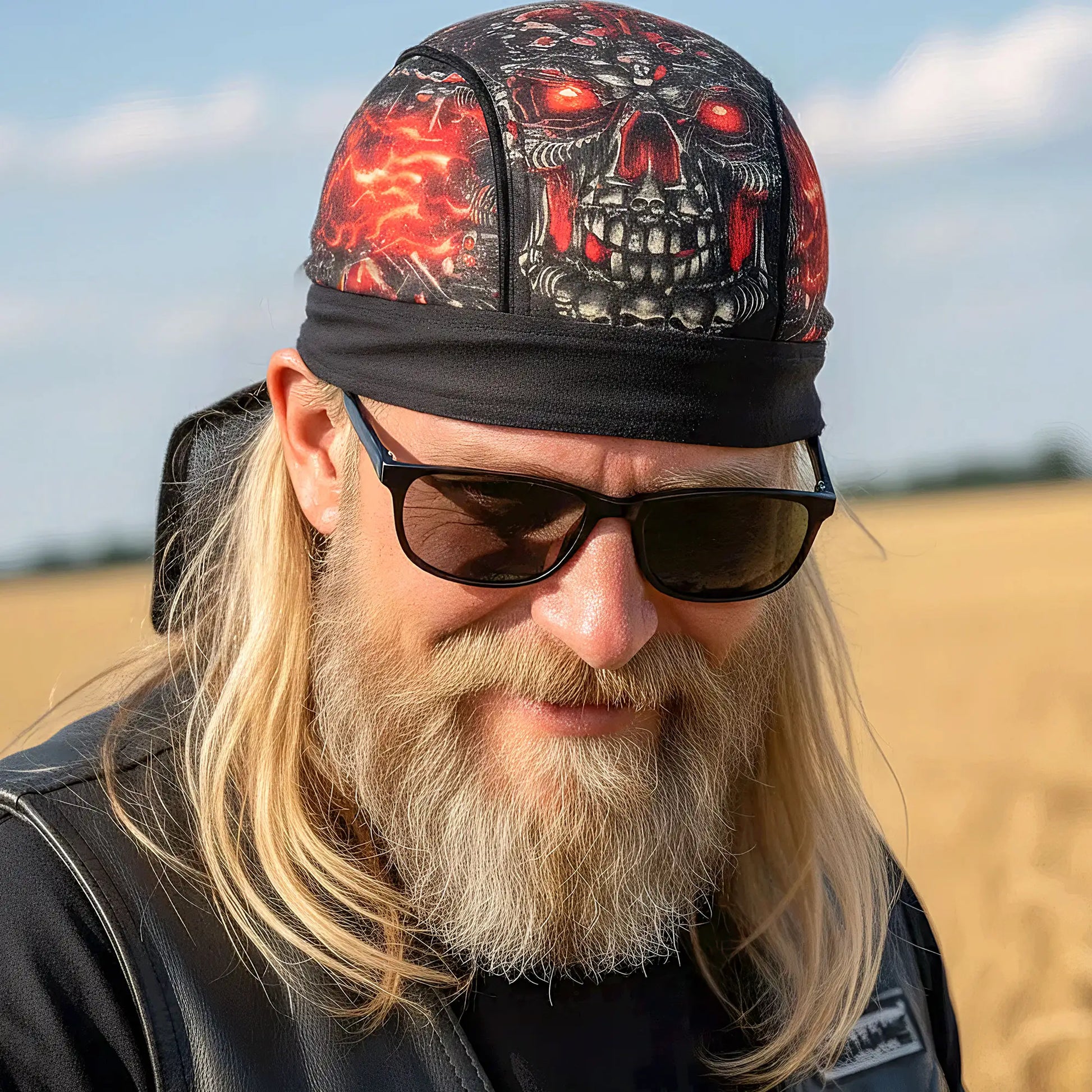 Whether you're hitting the road for a joyride on your motorcycle, getting together with your club, or just need some UV protection and sweat control, Hot Leathers premium doo rag head wraps are just what you need! Put on your new headwrap bandana while you run errands or handle some yard work. Represent your unique style with our moisture wicking, mesh lined head wraps, showcasing bright, long lasting designs sure to turn heads! This head wrap features our original skulls and flames design.