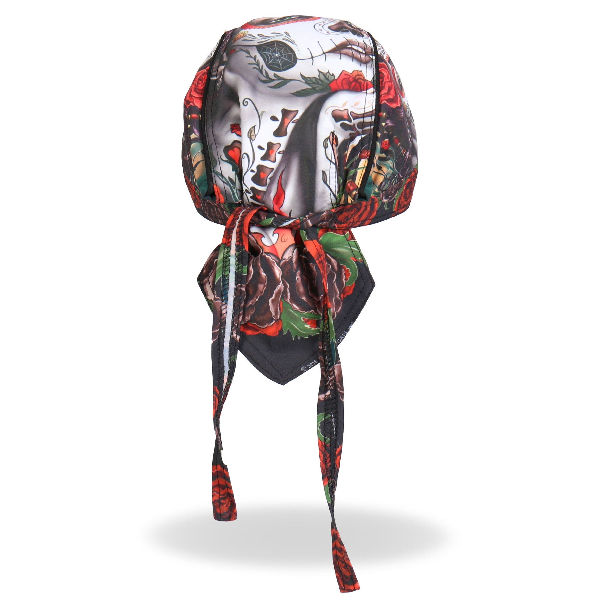 Whether you're hitting the road for a joyride on your motorcycle, getting together with your club, or just need some UV protection and sweat control, Hot Leathers premium doo rag head wraps are just what you need! Put on your new headwrap bandana while you run errands or handle some yard work. Represent your unique style with our moisture wicking, mesh lined head wraps, showcasing bright, long lasting designs sure to turn heads! This head wrap features our original Sugar Woman design.