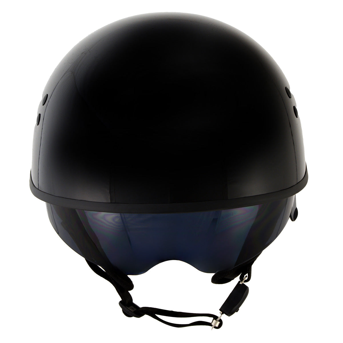 Hot Leathers T72 Black Widow Gloss Black Motorcycle Half Helmet Biker w/ Drop Down Visor