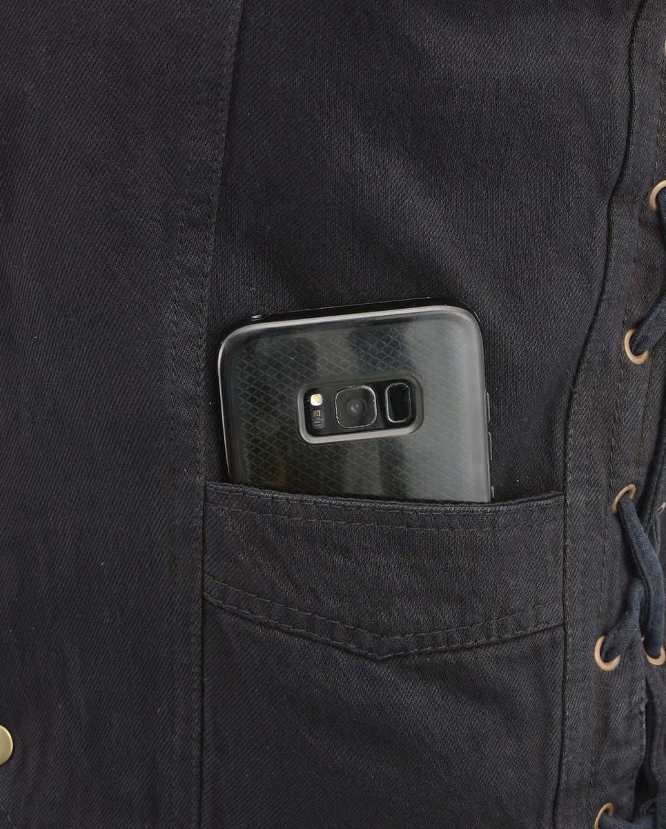 M Boss Motorcycle Apparel BOS13003 Men's Black Denim Motorcycle Side Lace Vest with Quick Draw Pocket