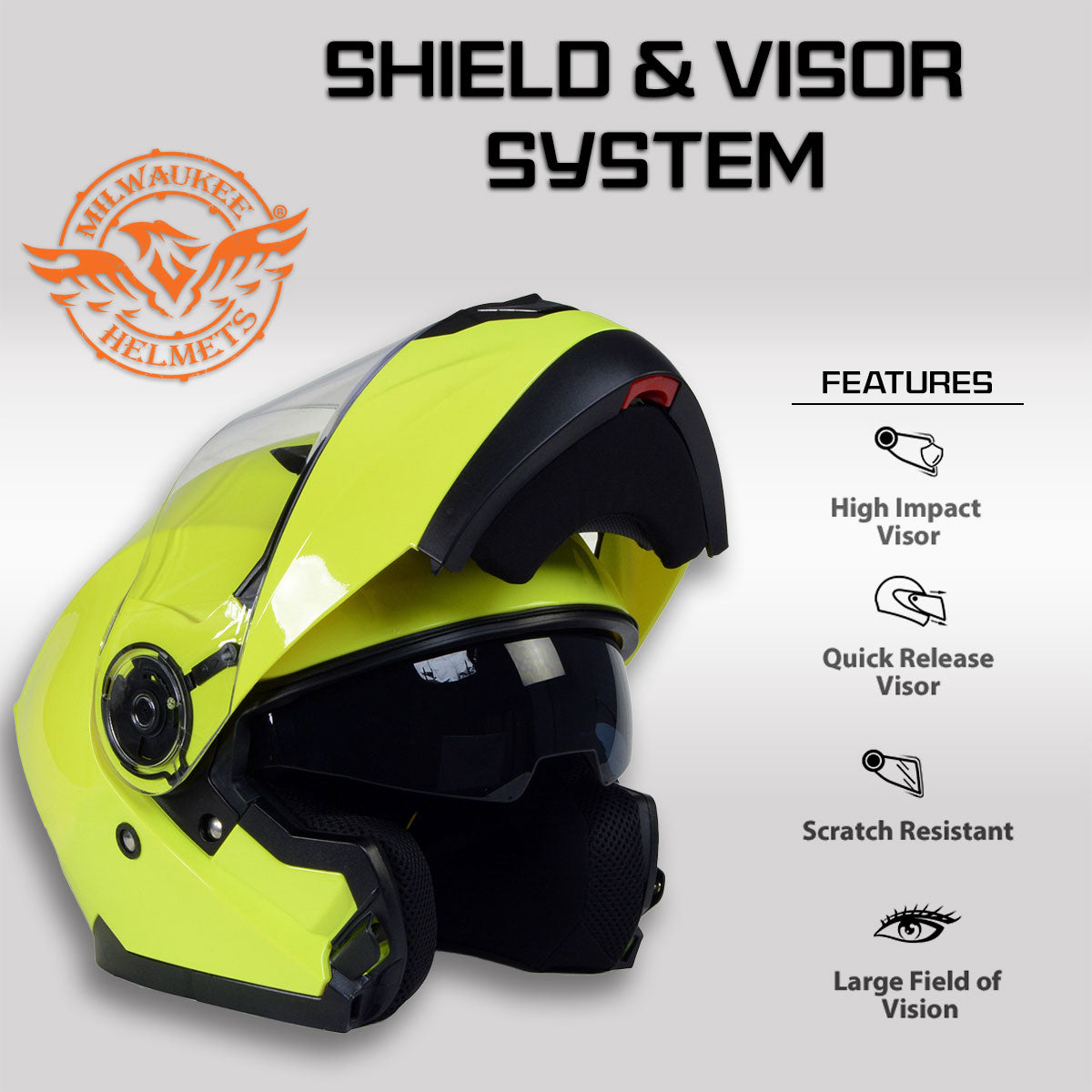 Milwaukee Helmets MPH9819DOT 'Breeze' Green Advanced Motorcycle Modular Helmet with Drop Down Visor