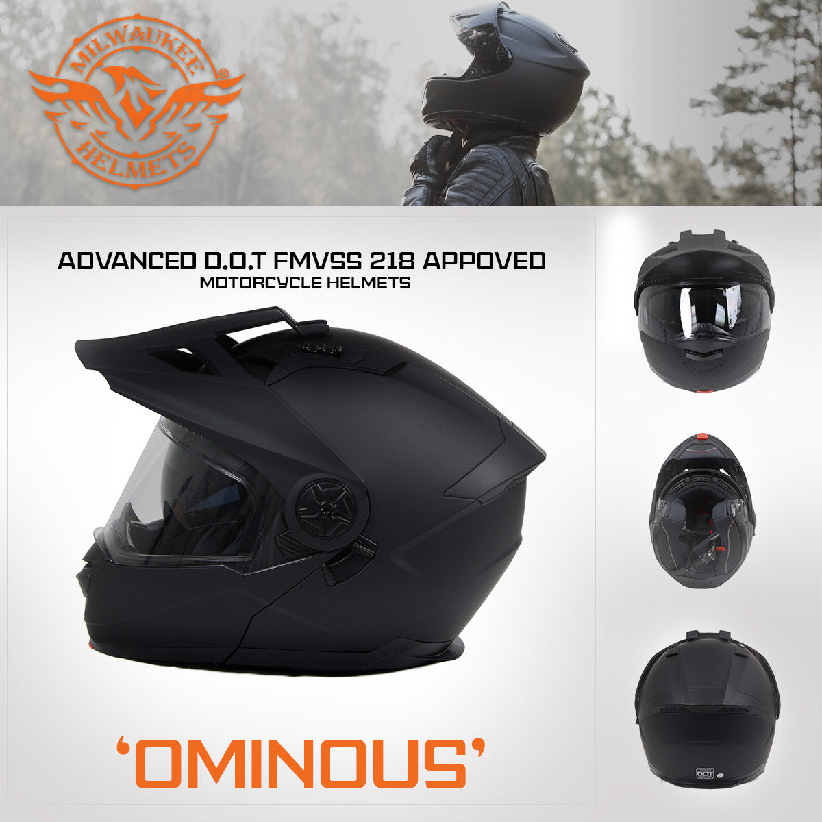 Milwaukee Helmets MPH9820DOT Flat Black Ominous Dual Sport Advanced Motorcycle Modular Helmet Biker