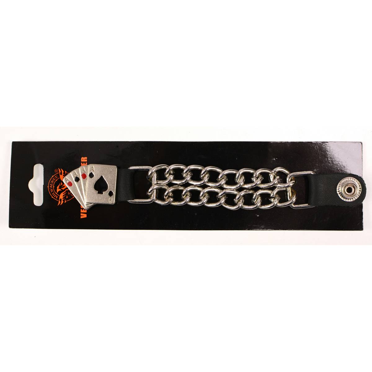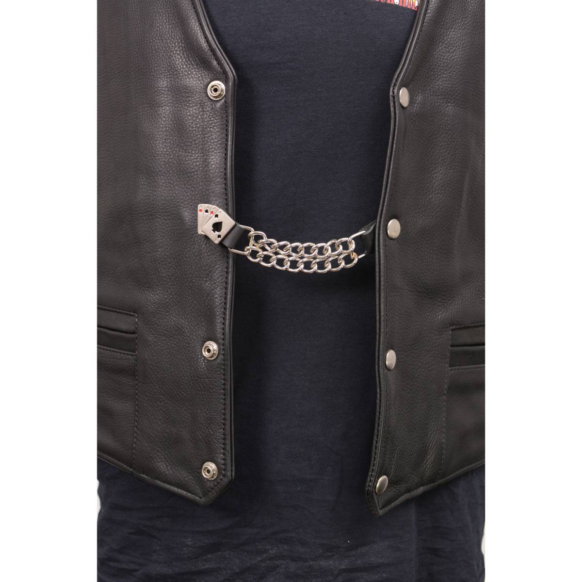 Milwaukee Leather 4 Aces Medallion Vest Extender - Double Chrome Chains Genuine Leather 6.5" Extension MLA1007-Single