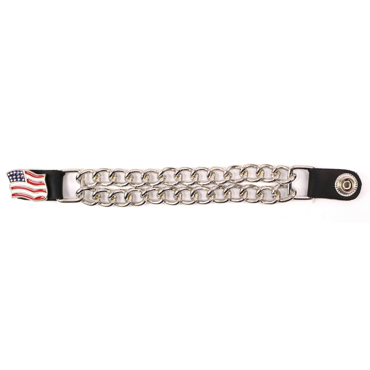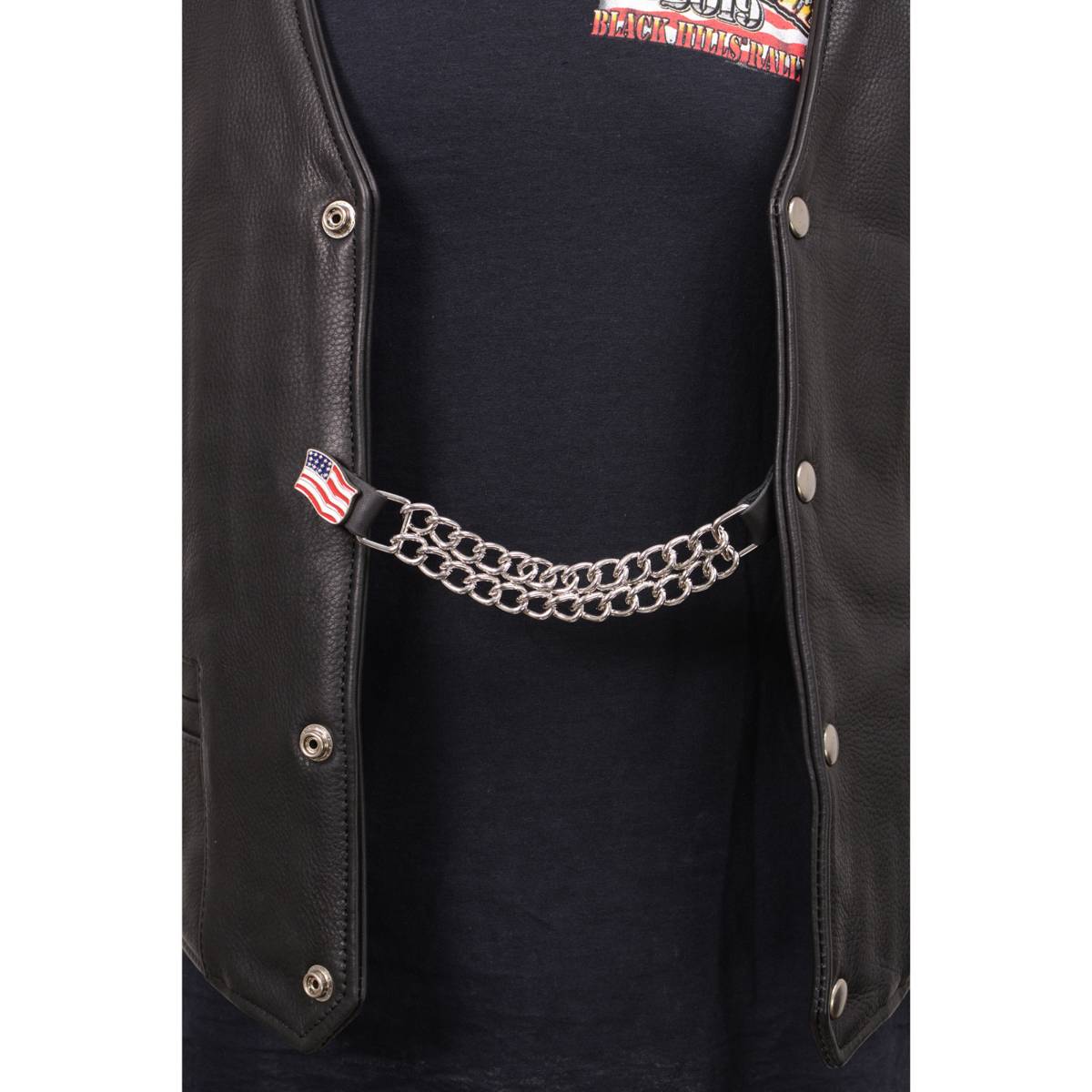 Milwaukee Leather American Flag Medallion Vest Extender - Double Chrome Chains Genuine Leather 8.5" Extension MLA1042-Single