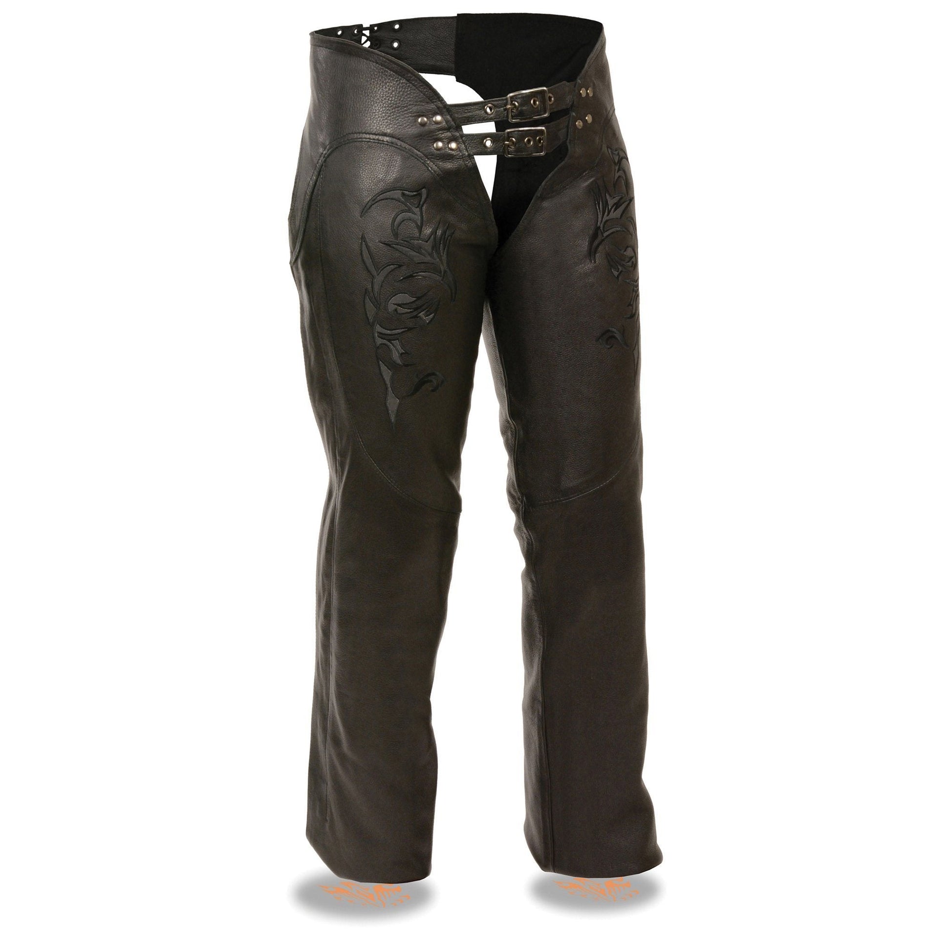 Milwaukee Leather Chaps for Women Black Low-Rise Waist- Double Buckle Reflective Embroidery Motorcycle Chap- ML1187
