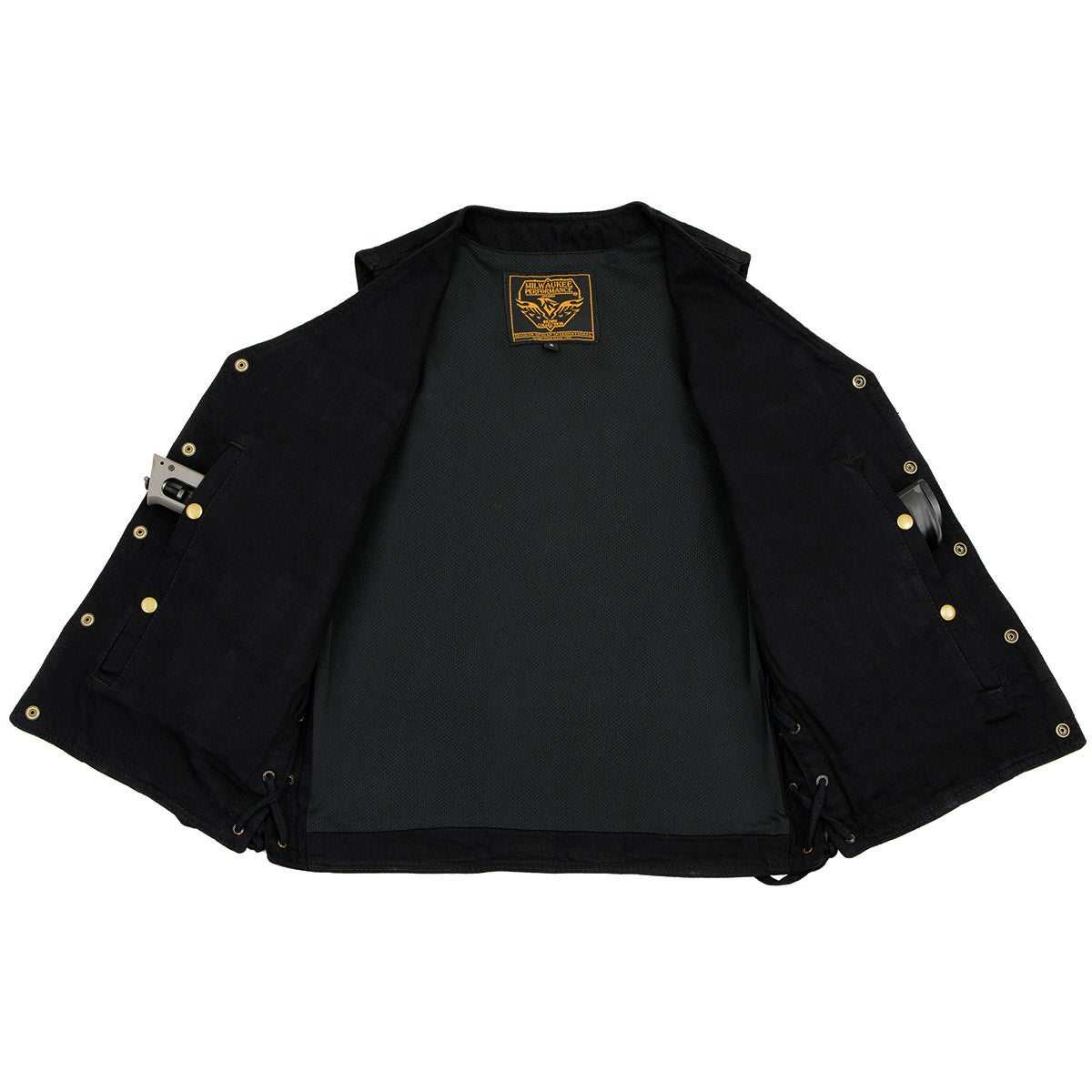 Milwaukee Leather DM1360 Men's Classic Black Denim Motorcycle Biker Riders Vest w/ Adjustable Side Laces