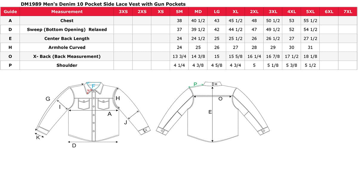 - Closure and Side Laces | Our men's denim vest has a classic snap button closure. The side laces allow for size adjustments added for an optimal fit. The inside features a soft satin liner. The vest is suitable for men of all sizes. It helps to keep you protected while riding.
