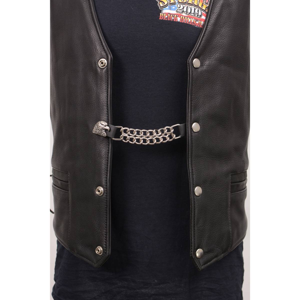 - Snap Button Closure | These unisex leather vest chain extenders end with top grain cowhide leather loops, accompanied by a nickel snap closure for a secure connection to the leather vest, jacket, or shirt. Leather vest extensions allows more air to flow through your body, keeping you cool while you ride. These Vests extenders are designed to fit MOST Milwaukee Leather Products; however, these are not guaranteed to work with other manufacturers garments as snap sizes can vary.