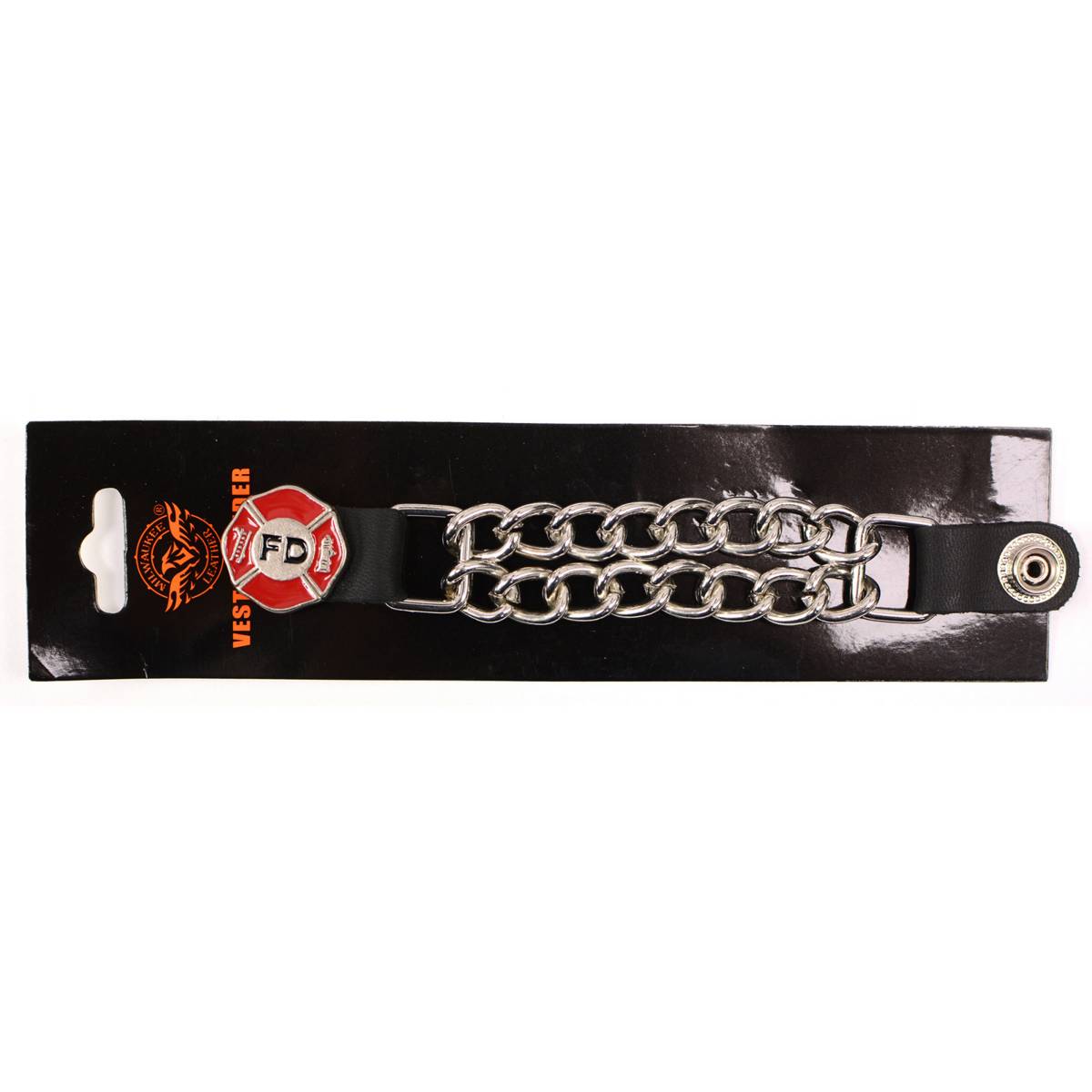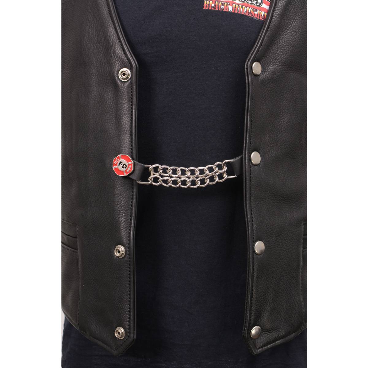 Milwaukee Leather Fire Department Medallion Vest Extender - Double Chrome Chains Genuine Leather 6.5" Extension MLA1012-Single