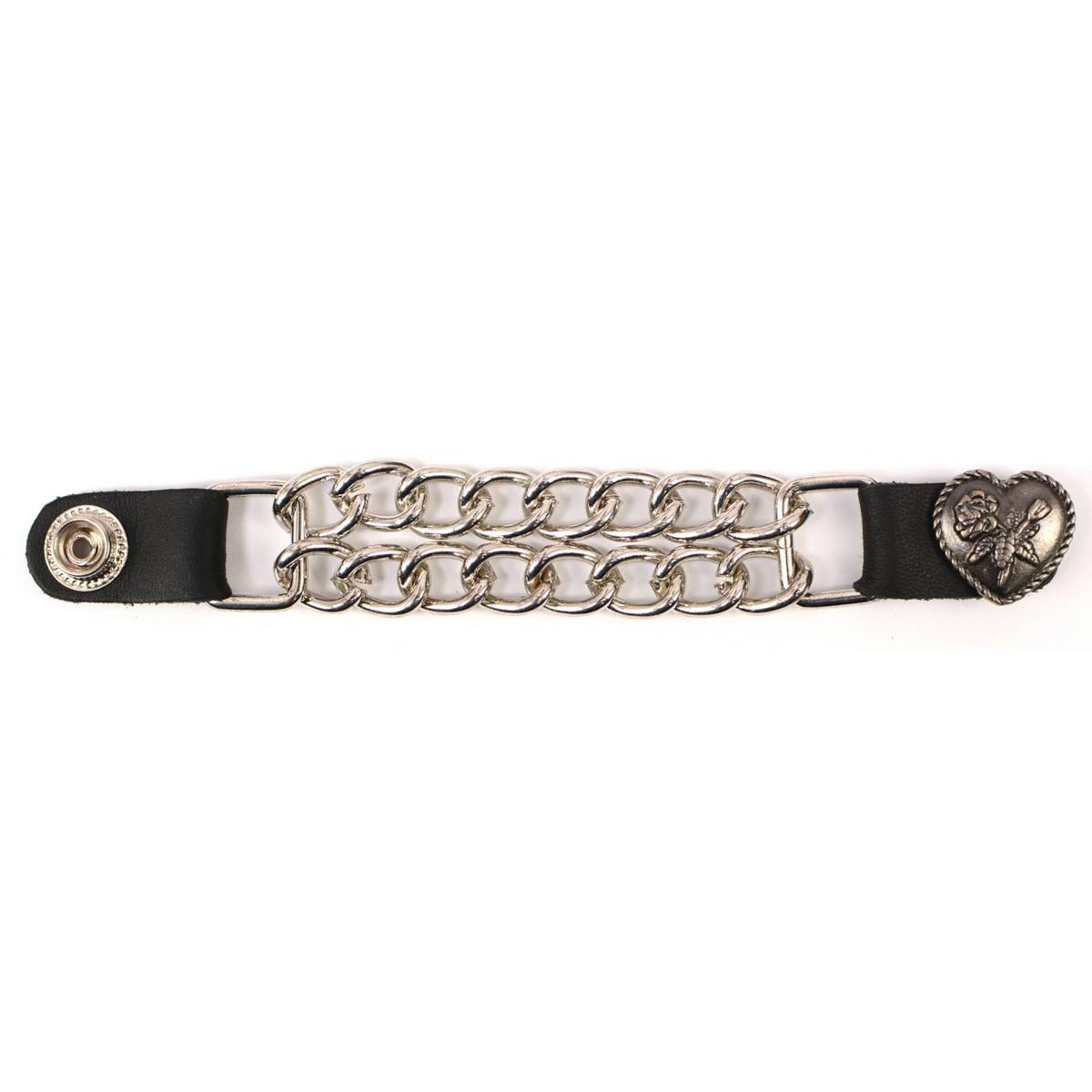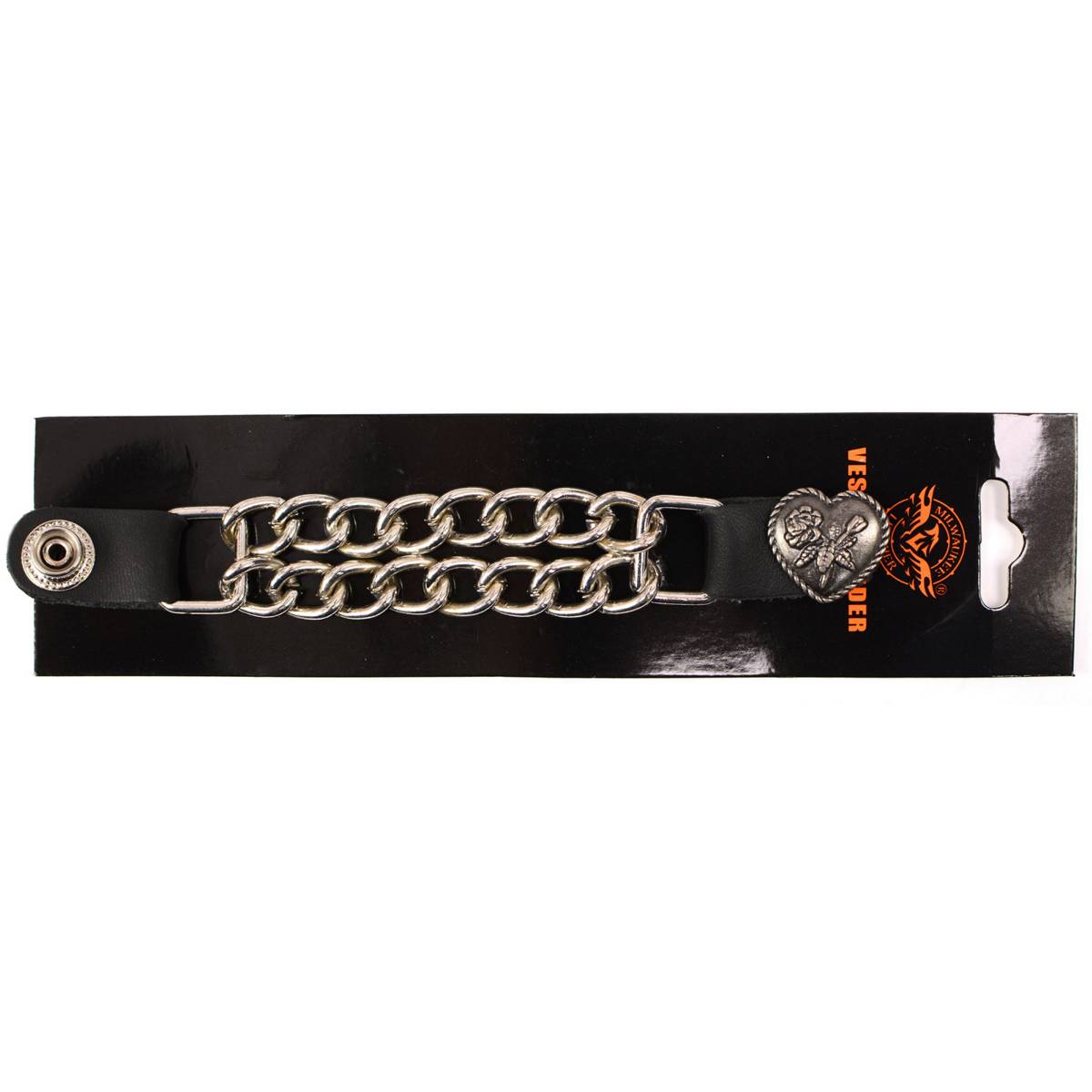 Milwaukee Leather Heart Rose Medallion Vest Extender - Double Chrome Chains Genuine Leather 6.5" Extension MLA1013-Single