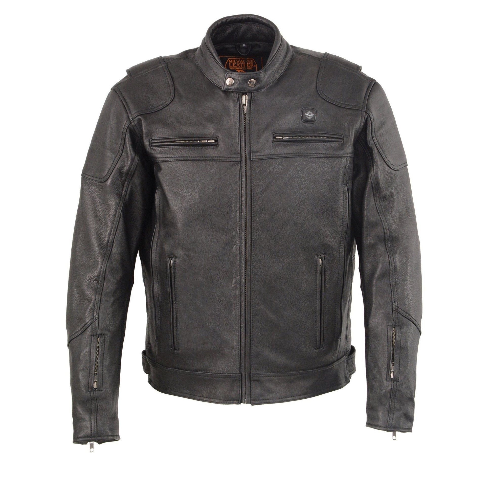 Milwaukee Leather Heated Jacket for Men's Black Cowhide Leather Motorcycle Vented Jacket for All Seasons MLM1513SET