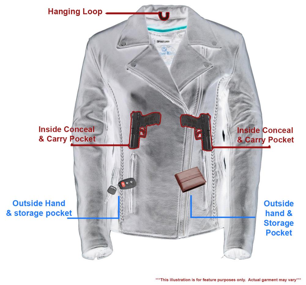 Milwaukee Leather LKL2711 Women's Braided Black Leather Motorcycle Rider Jacket w/ Studded Back