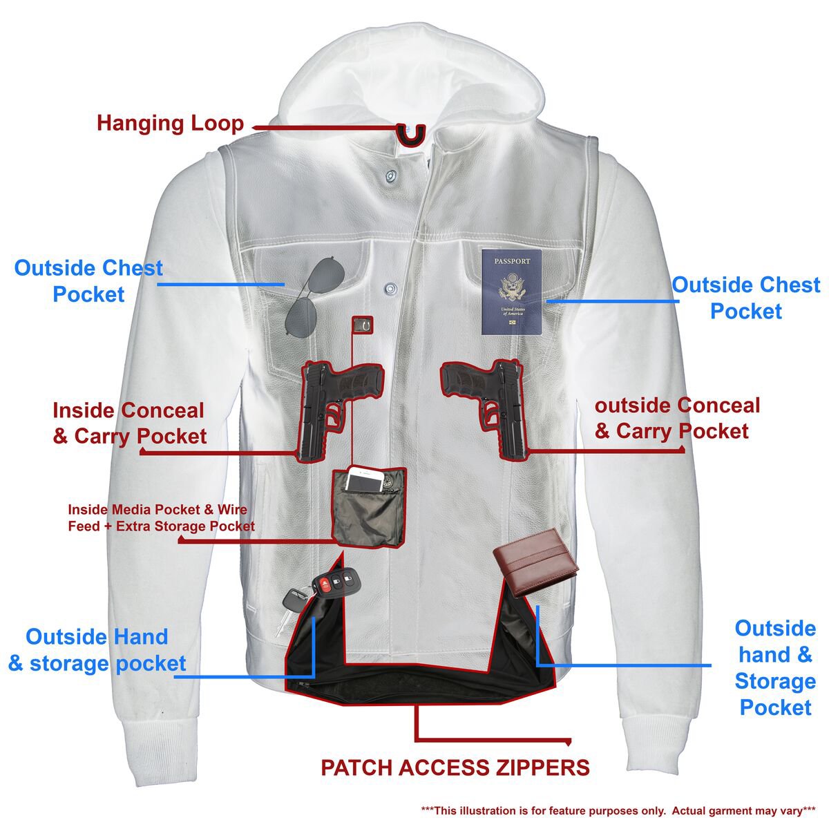 Milwaukee Leather LKM3714 Men's Black Club Style '2 in 1' Zipper Leather Vest with Removable Full Sleeve Hoodie