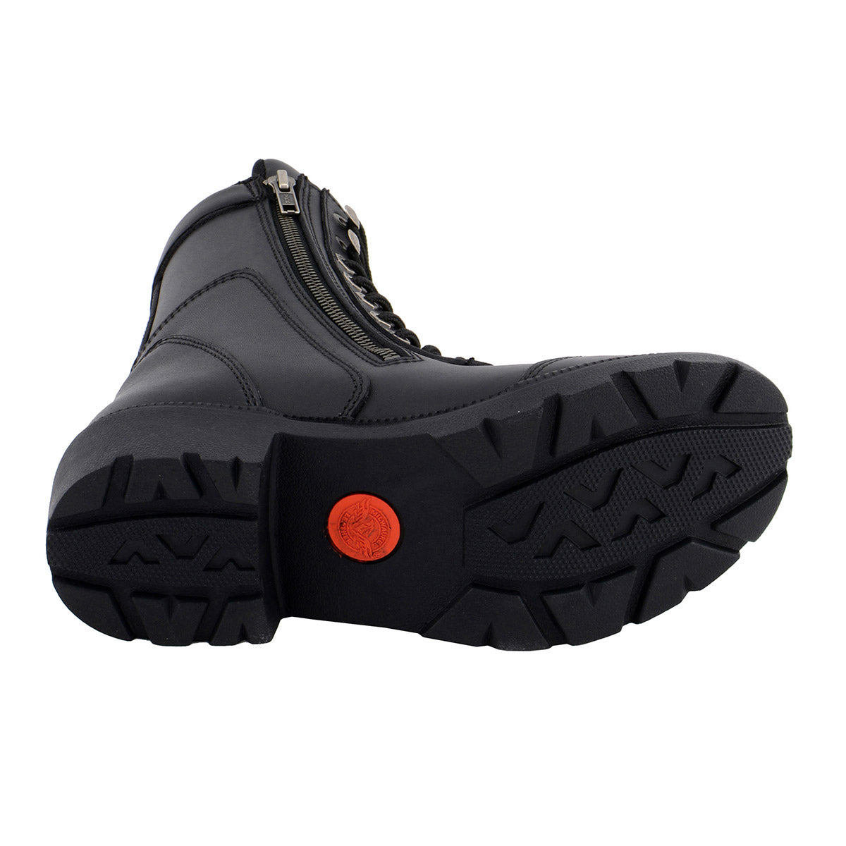 Milwaukee Leather MBL9301 Women's Black Leather Lace-Up Motorcycle Biker Riding Boots with Side Zipper Entry