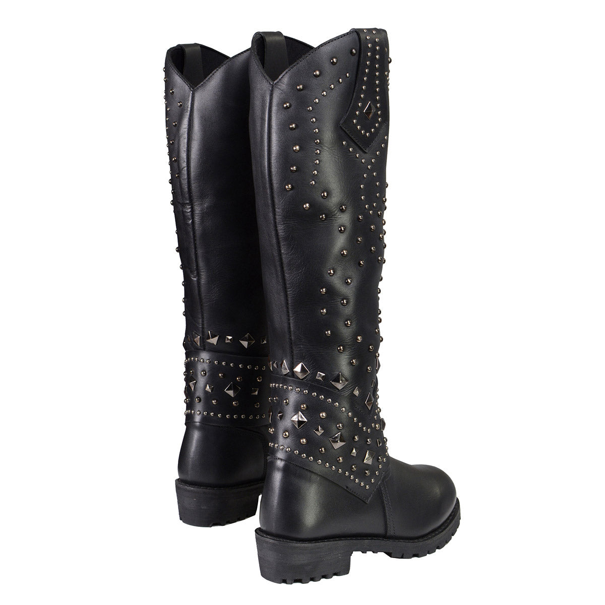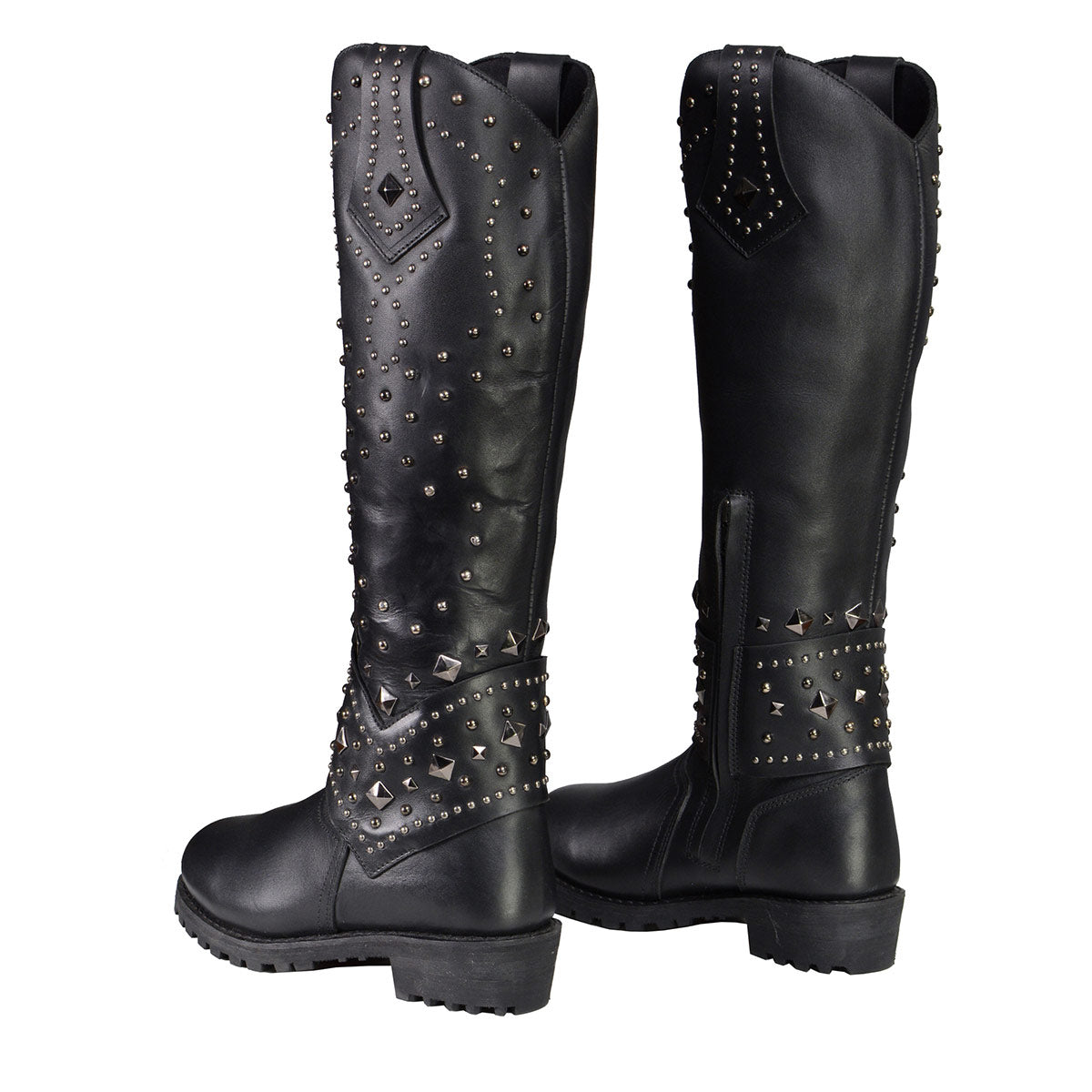 Milwaukee Leather MBL9371 Women's Black 18-Inch Leather Studded and Riveted Western Style Motorcycle Boots