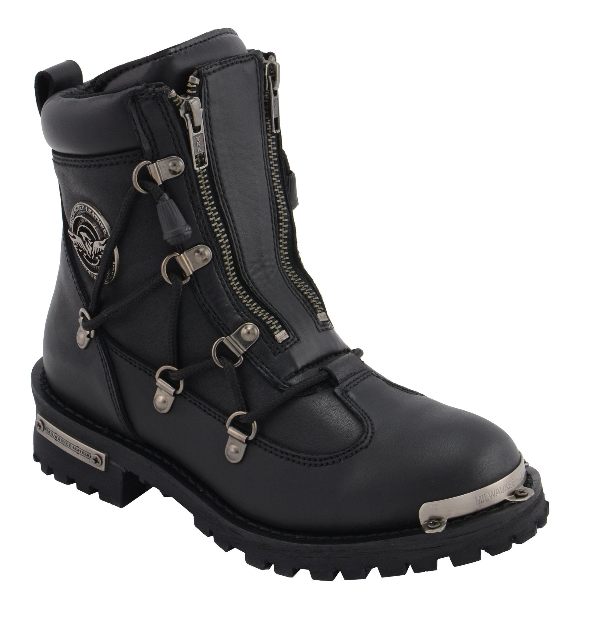 Milwaukee Leather MBL9375 Women's Premium Black Leather Diamond 6-Inch Twin Zipper Lock Motorccycle Riding Boots