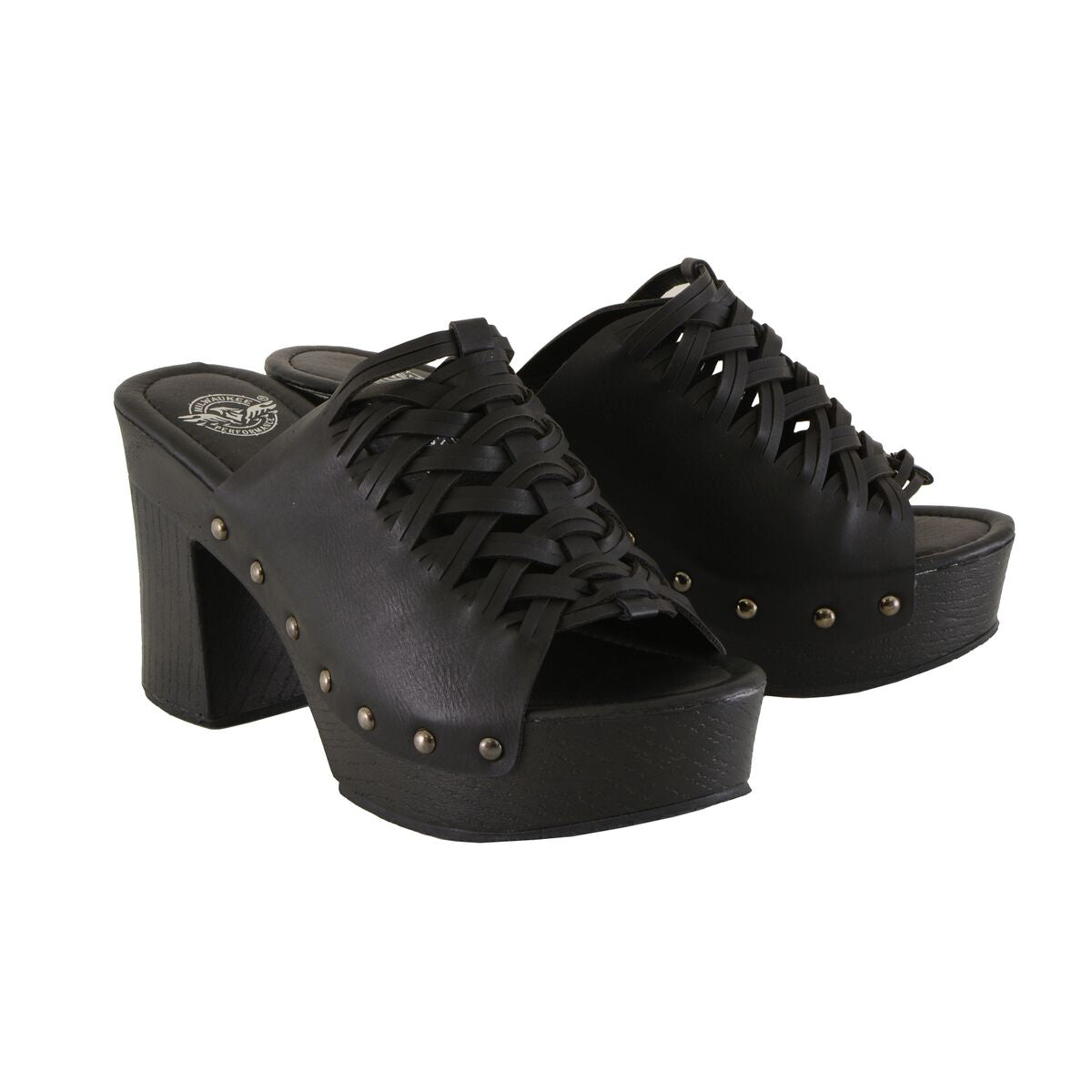 Milwaukee Leather MBL9410 Women's Black Open Toe Fashion Casual Platform Wedges with Studs