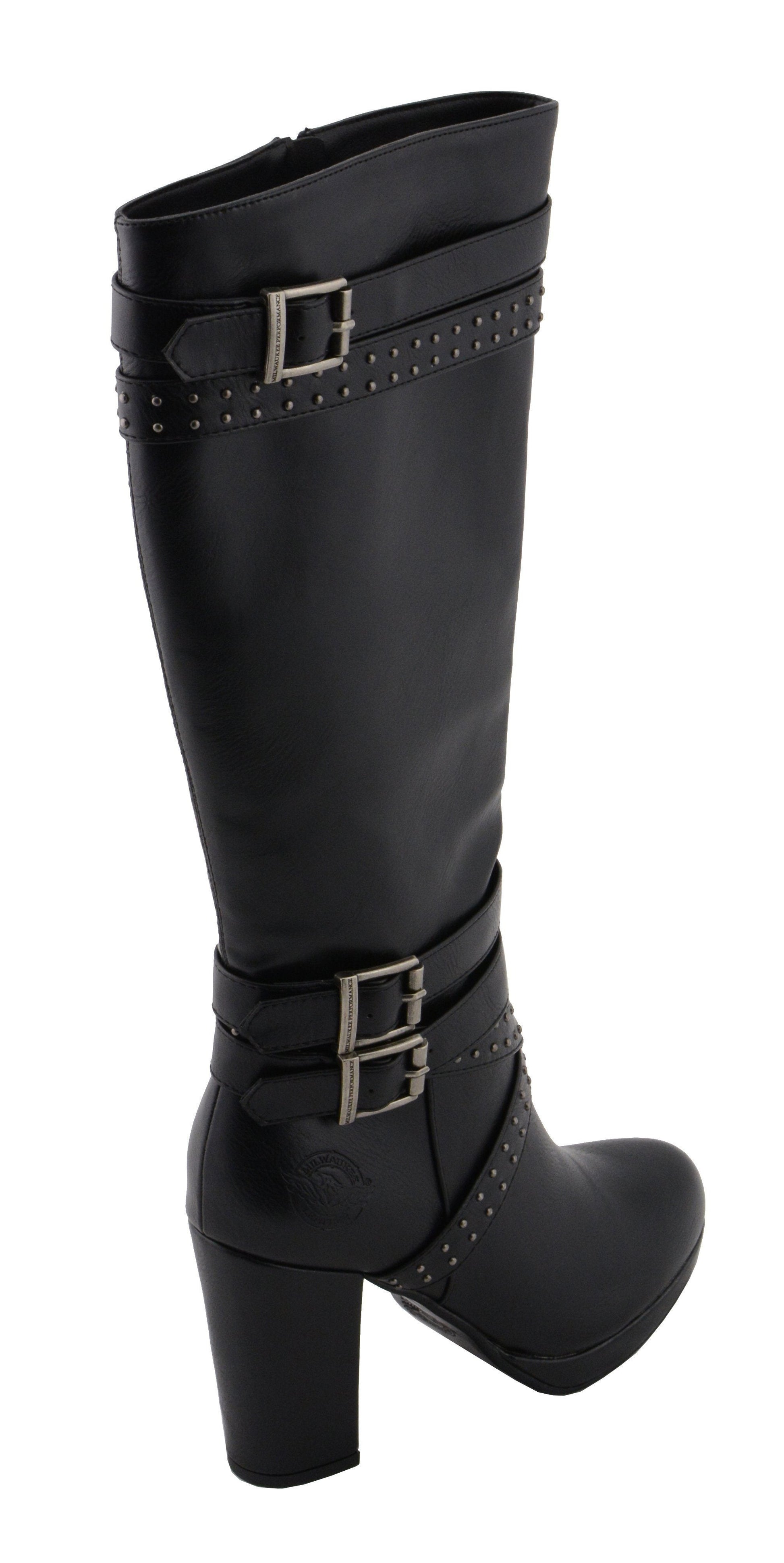 Milwaukee Leather MBL9422 Women's Tall Black Studded Strap Fashion Casual Boots with Platform Heel