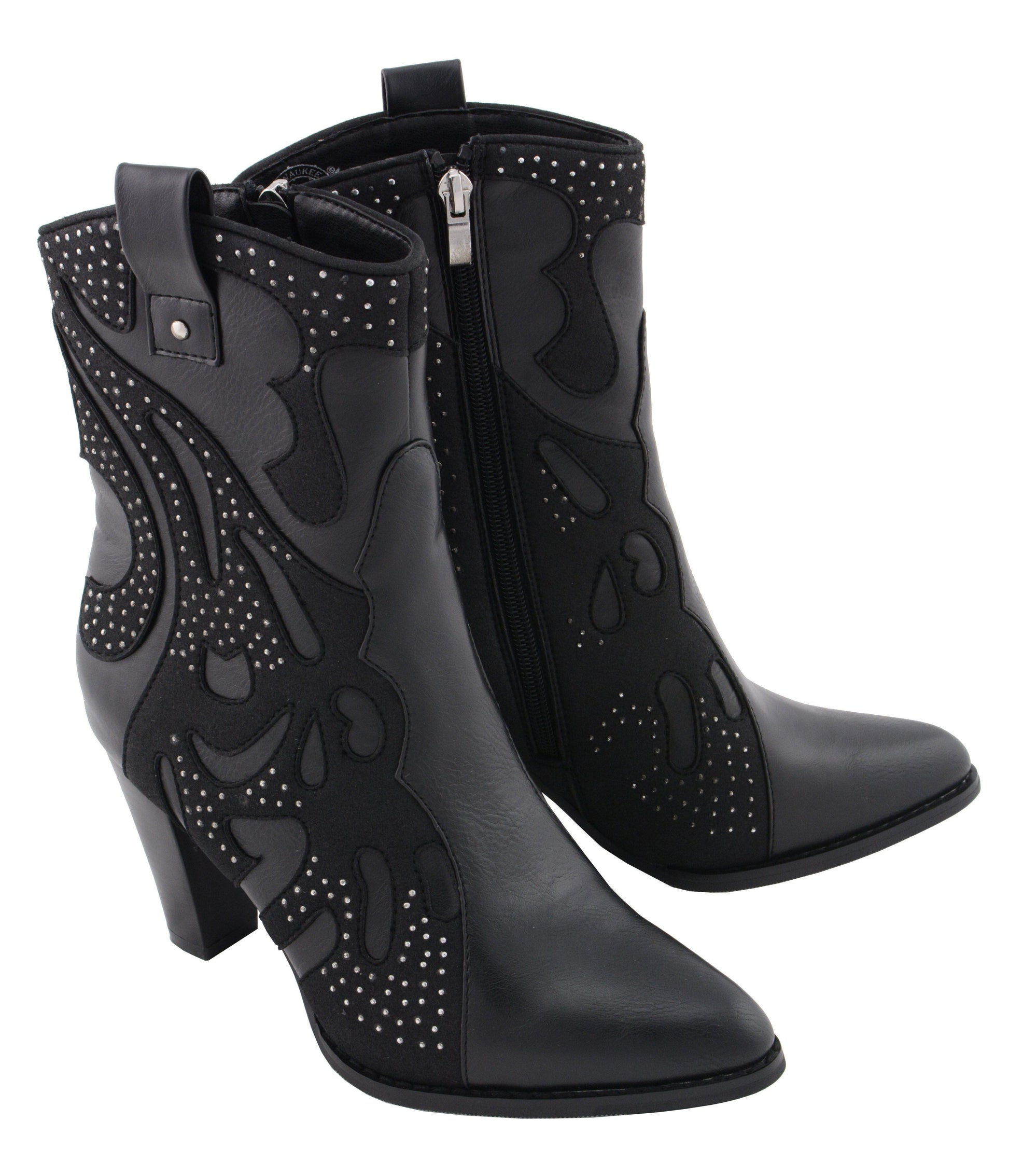 Milwaukee Leather MBL9429 Women's Black Western Style Fashion Casual Boots with Studded Bling