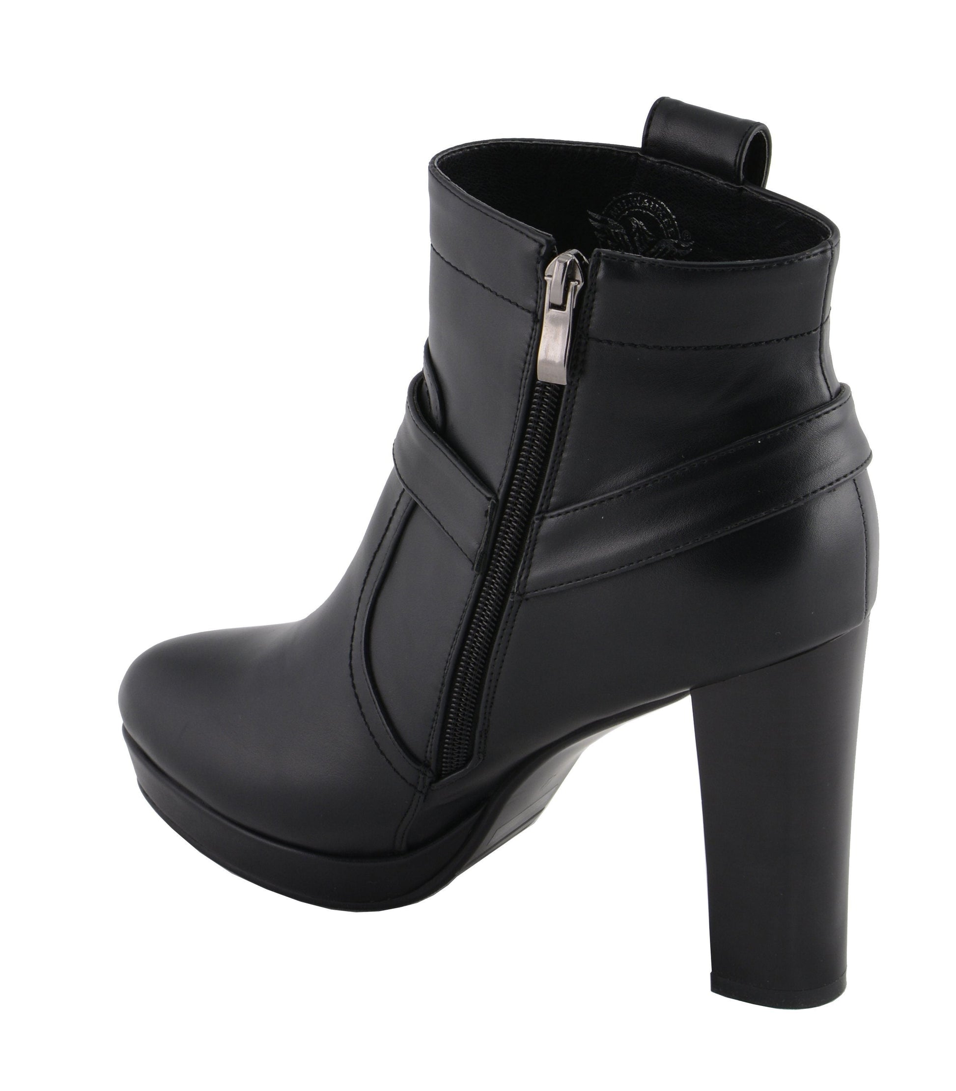 Milwaukee Leather MBL9432 Women's Black Harness Ankle Fashion Boots with Block Heel