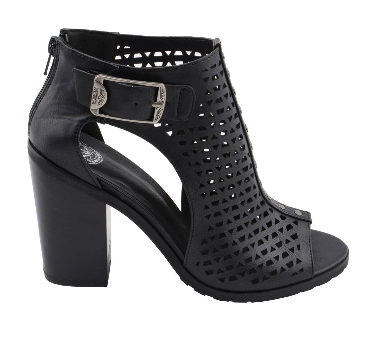 Milwaukee Leather MBL9453 Women's Black Mesh Open-Toe Platform Fashion Casual Heeled Sandals with Buckle Strap