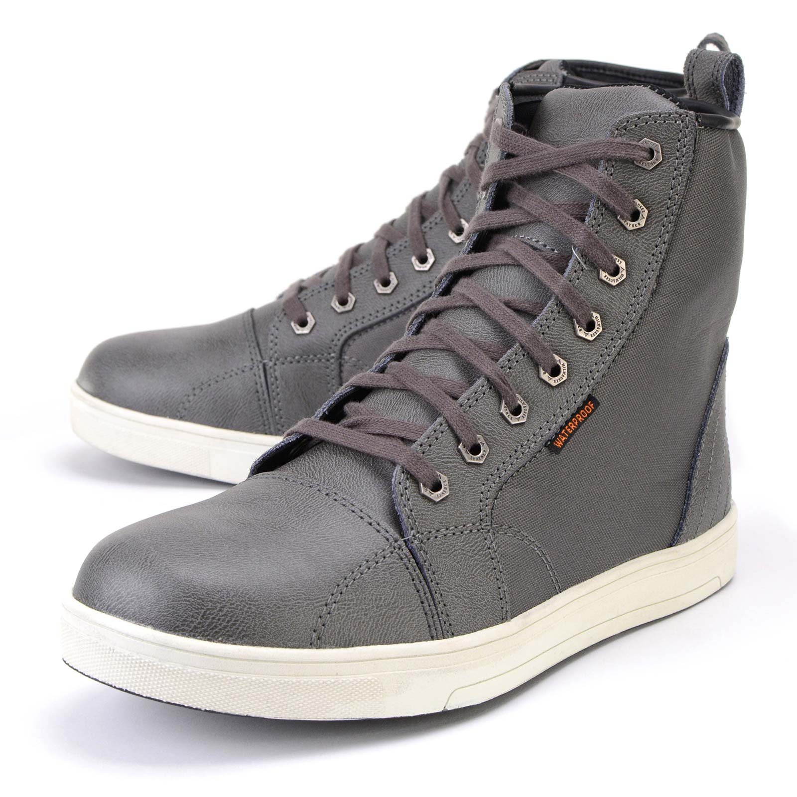 Milwaukee Leather MBM9003WP Men's Grey Leather and Canvas Reinforced Street Riding Waterproof Shoes with Ankle Support
