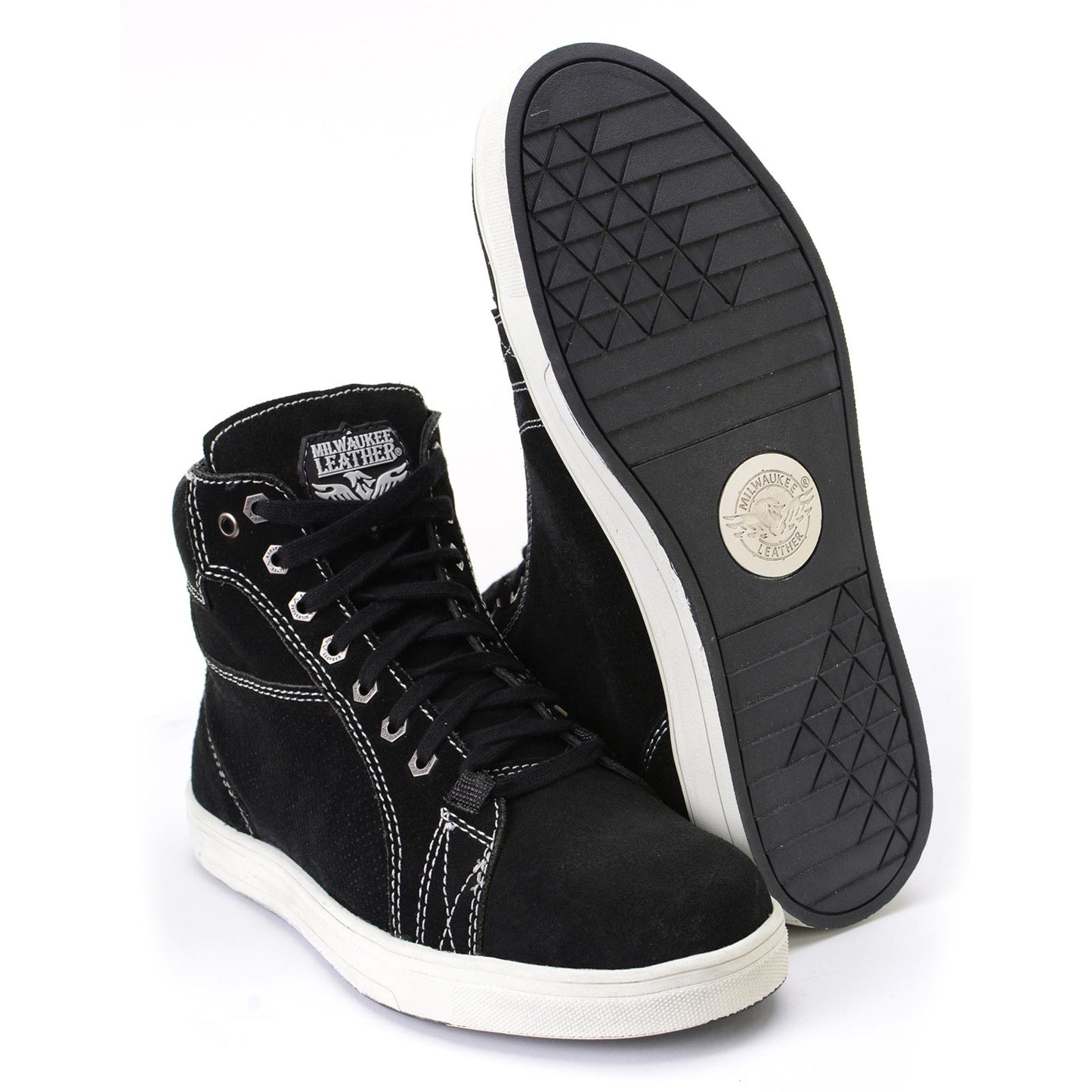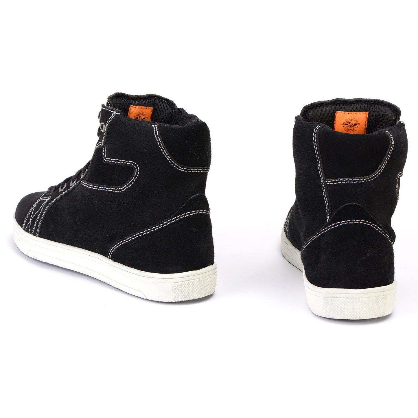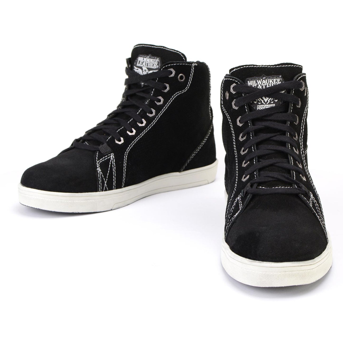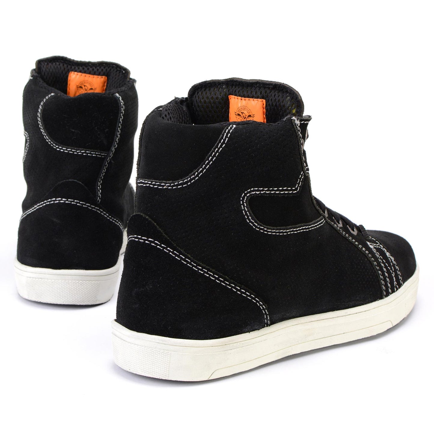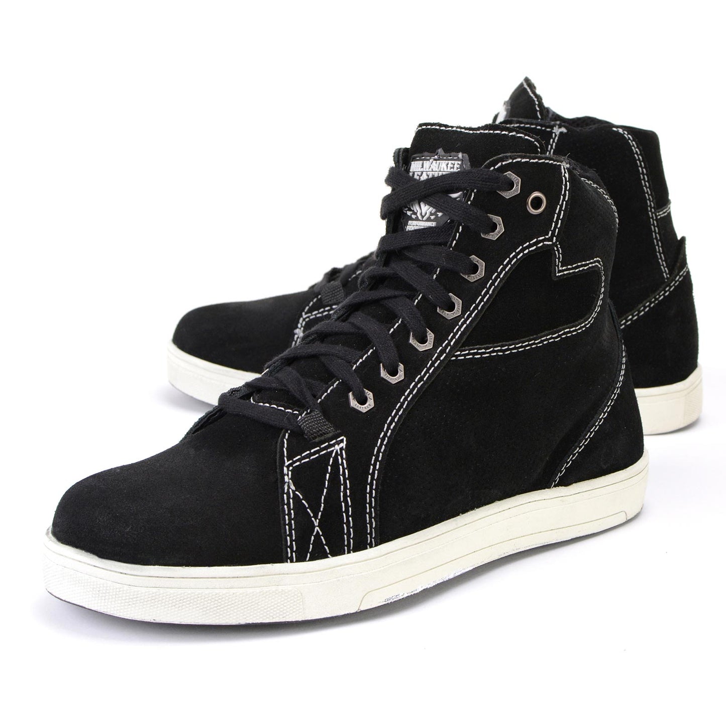 Milwaukee Leather MBM9107 Men's Black Suede Leather w/ White Stitching Reinforced Street Riding Shoes w/ Ankle Support with Ankle Support