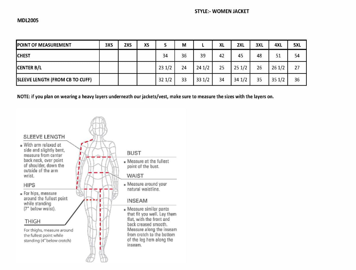 - Ladies leather can run two sizes smaller – measure your chest size!