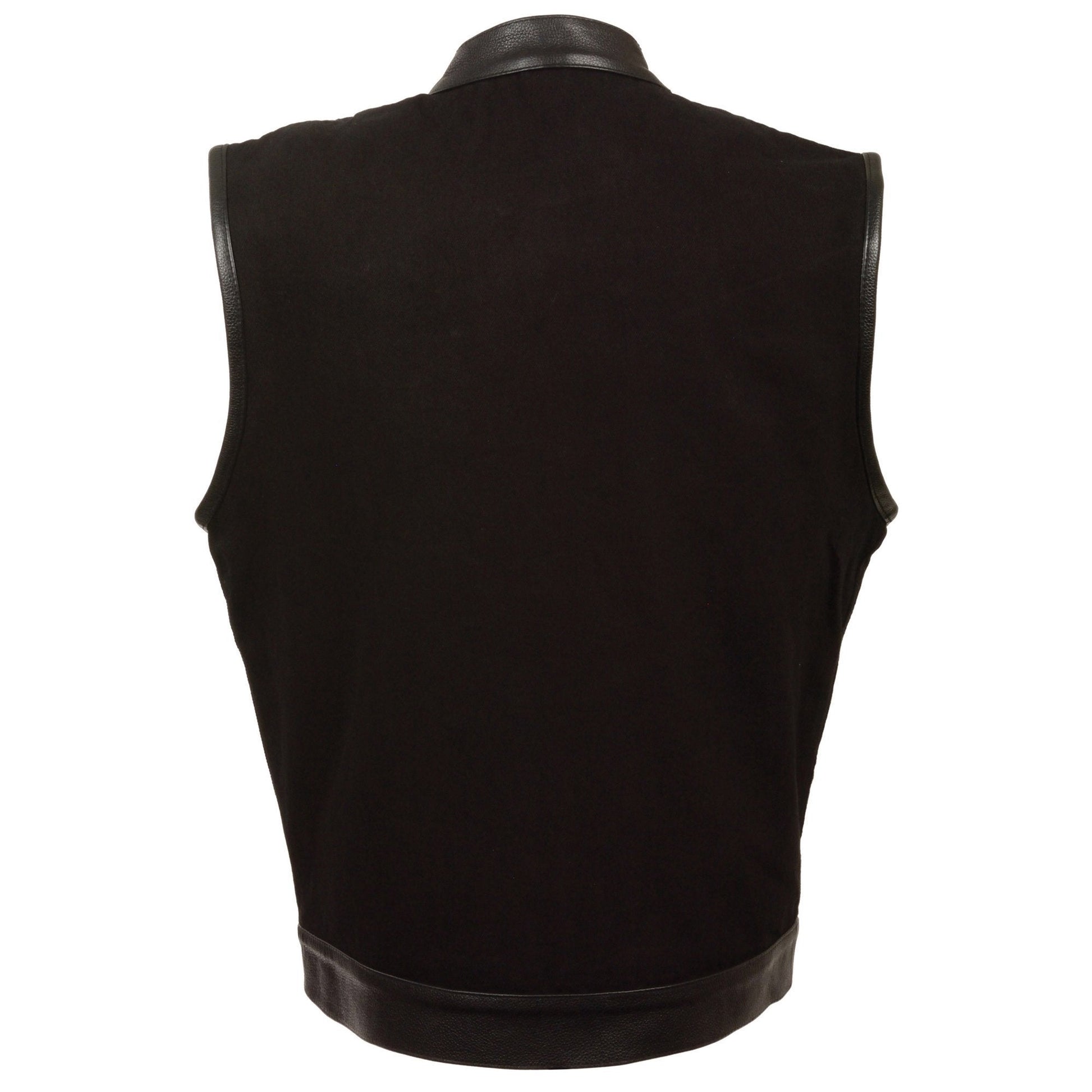 Milwaukee Leather MDM3010 Men's Black Denim Club Style Biker Vest with Leather Trim and Hidden Zipper