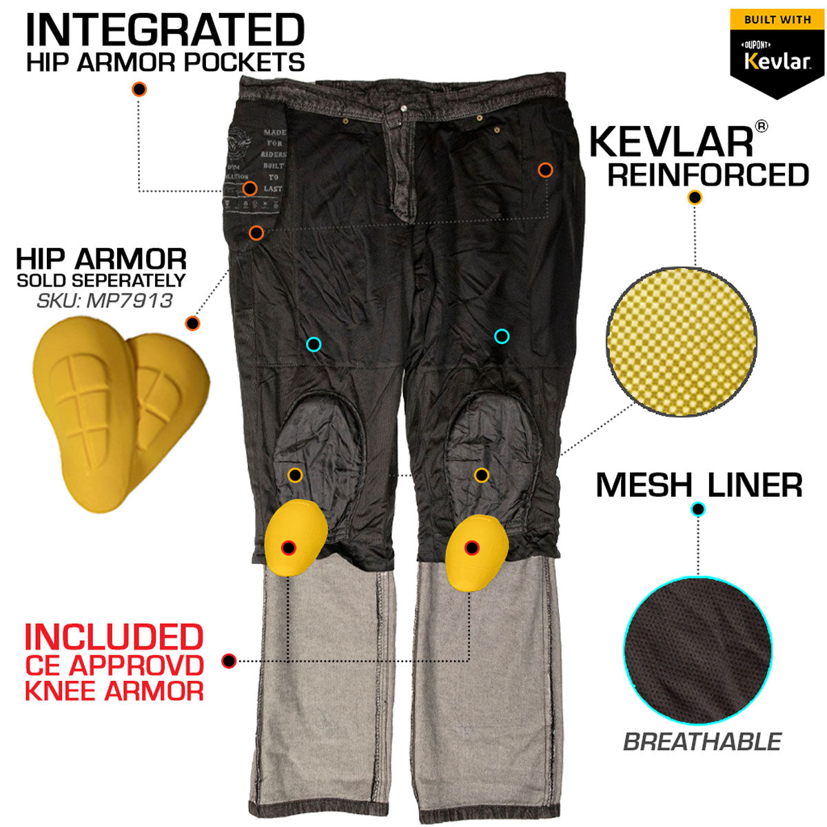 Milwaukee Leather MDM5001 Men's Metro Black CE Armored Motorcycle Riding Denim Jeans Reinforced w/ Aramid Fibers