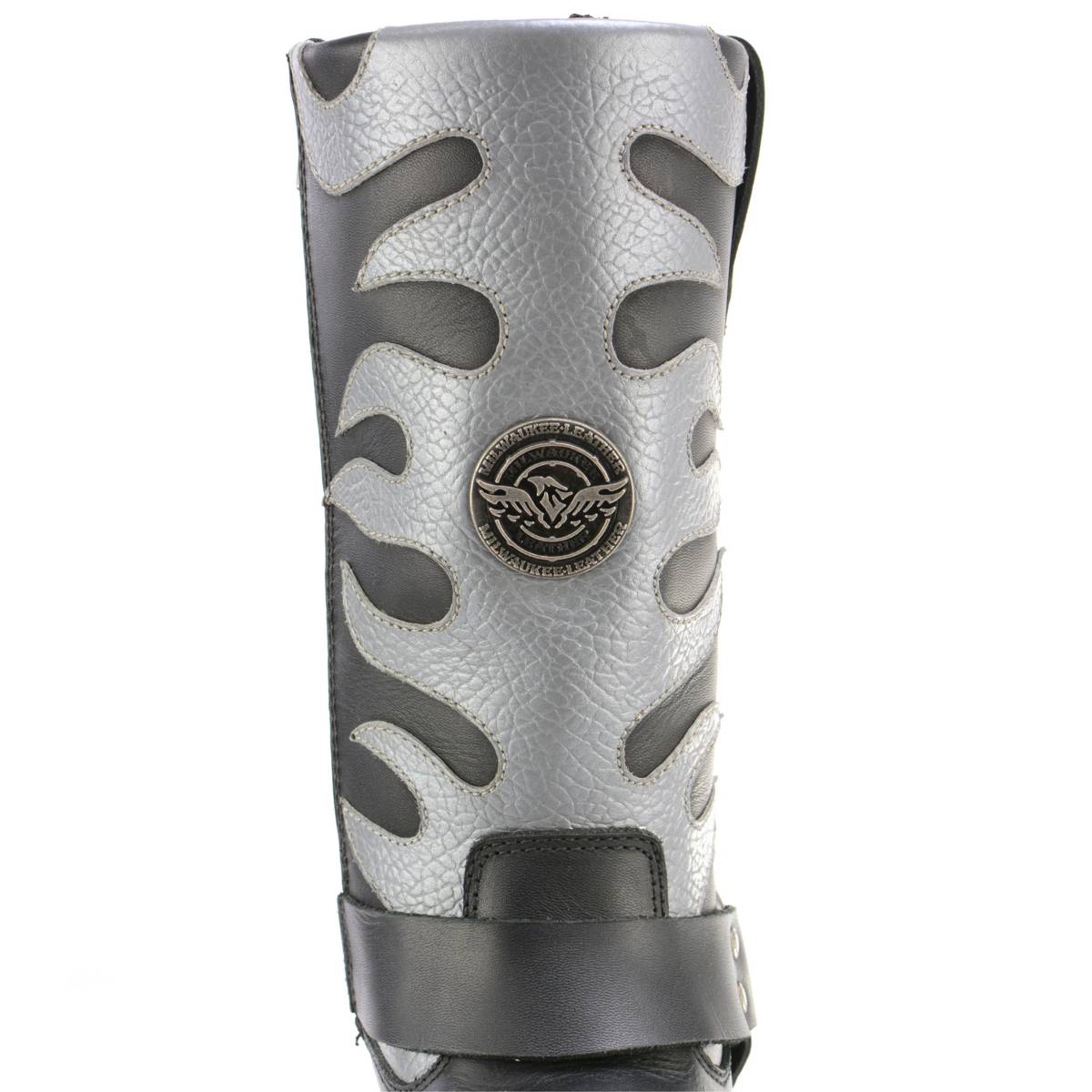 Milwaukee Leather Men’s Fire Fight Harness Boots – Black Leather w/ Silver Flames, 11″ Square Toe, Inside Zipper - MBM9067
