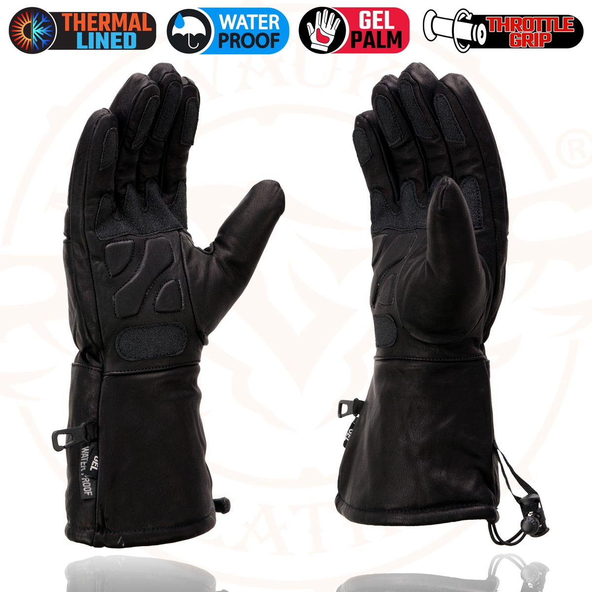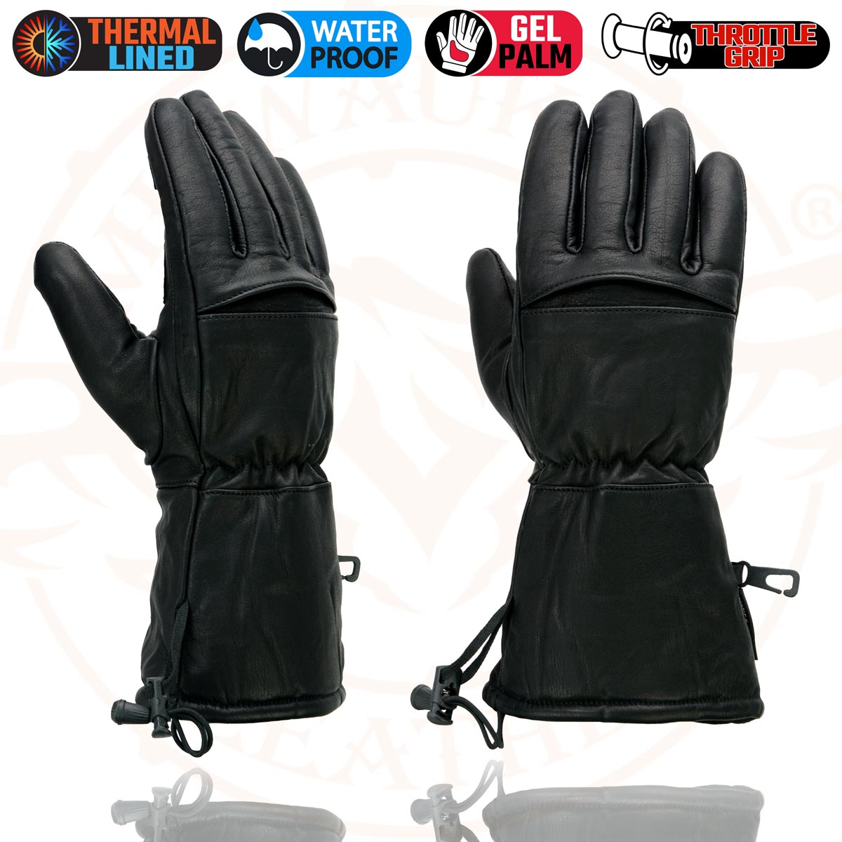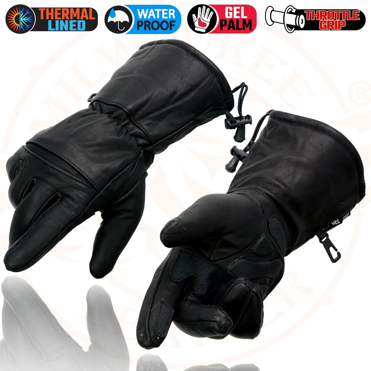 Milwaukee Leather Men's Black Gauntlet Motorcycle Hand Gloves-Black Leather Waterproof Gel Palm Soft Skin-SH292