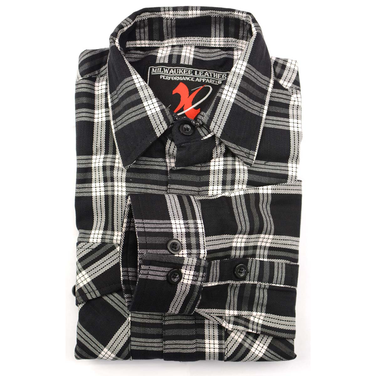 Milwaukee Leather MNG11646 Men's Flannel Plaid Shirt Black and White Long Sleeve Cotton Button Down Shirt