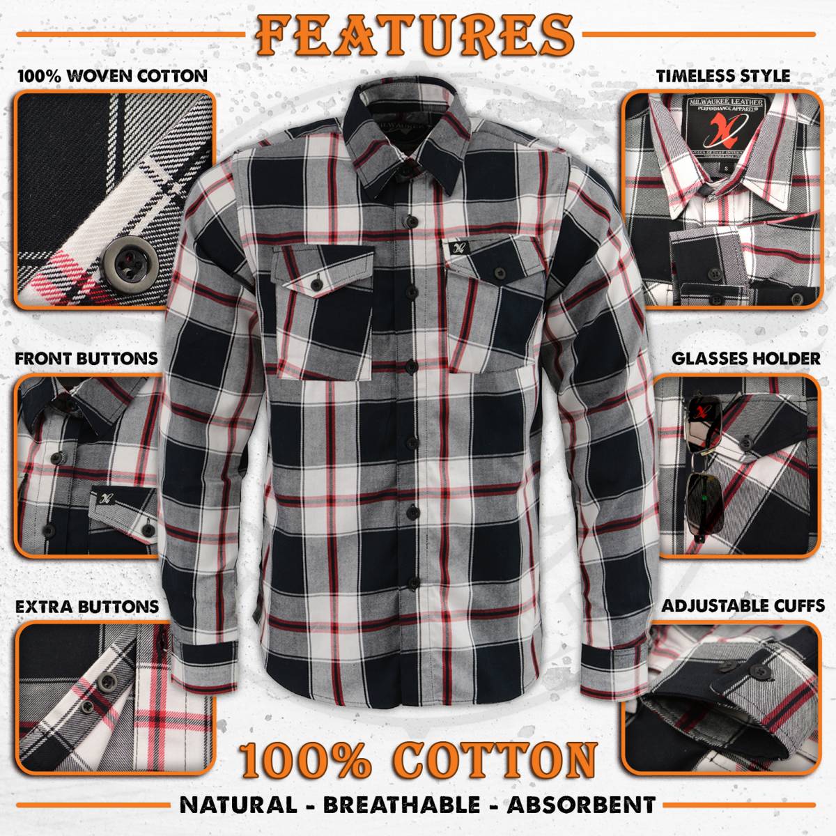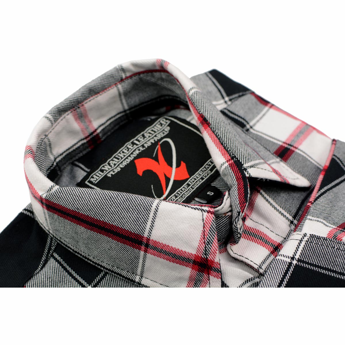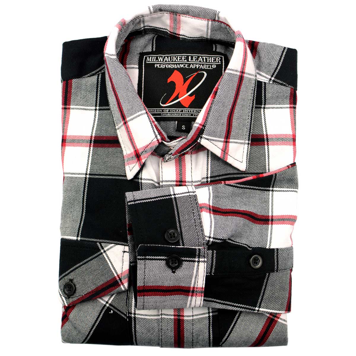 Milwaukee Leather MNG11625 Men's Flannel Plaid Black and White with Red Long Sleeve Cotton Button Down Shirt