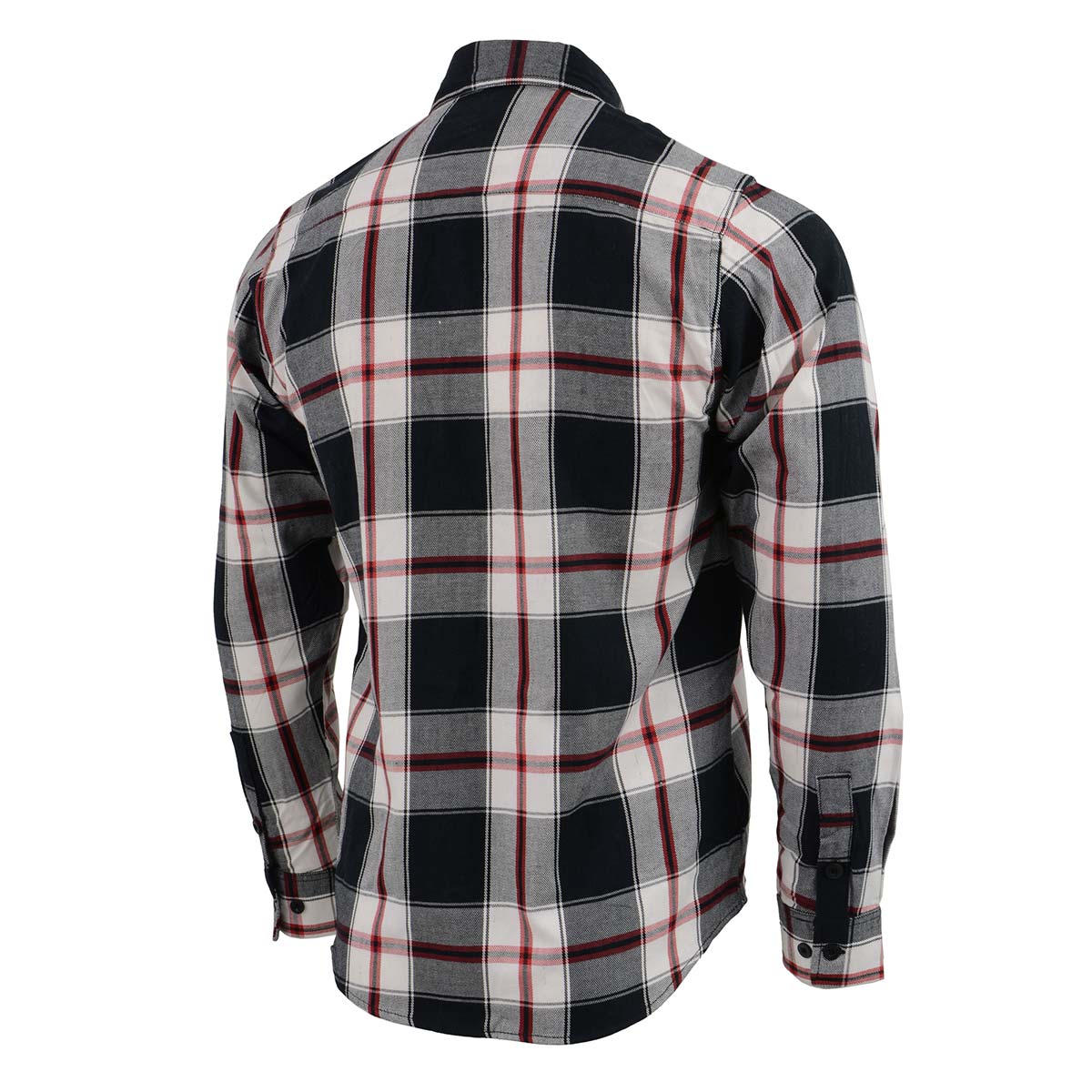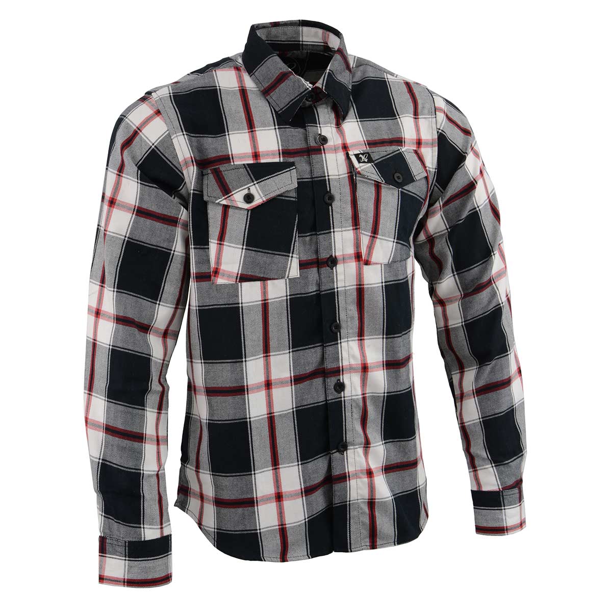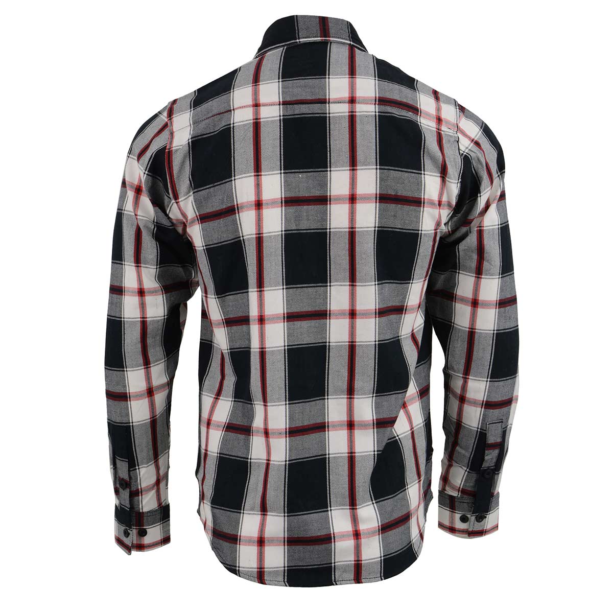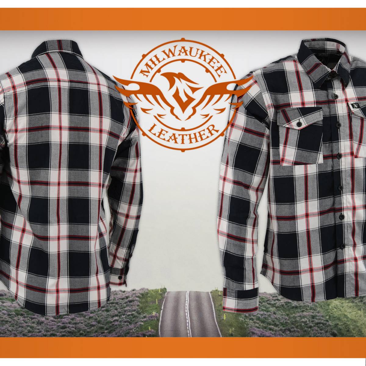 Milwaukee Leather MNG11625 Men's Flannel Plaid Black and White with Red Long Sleeve Cotton Button Down Shirt