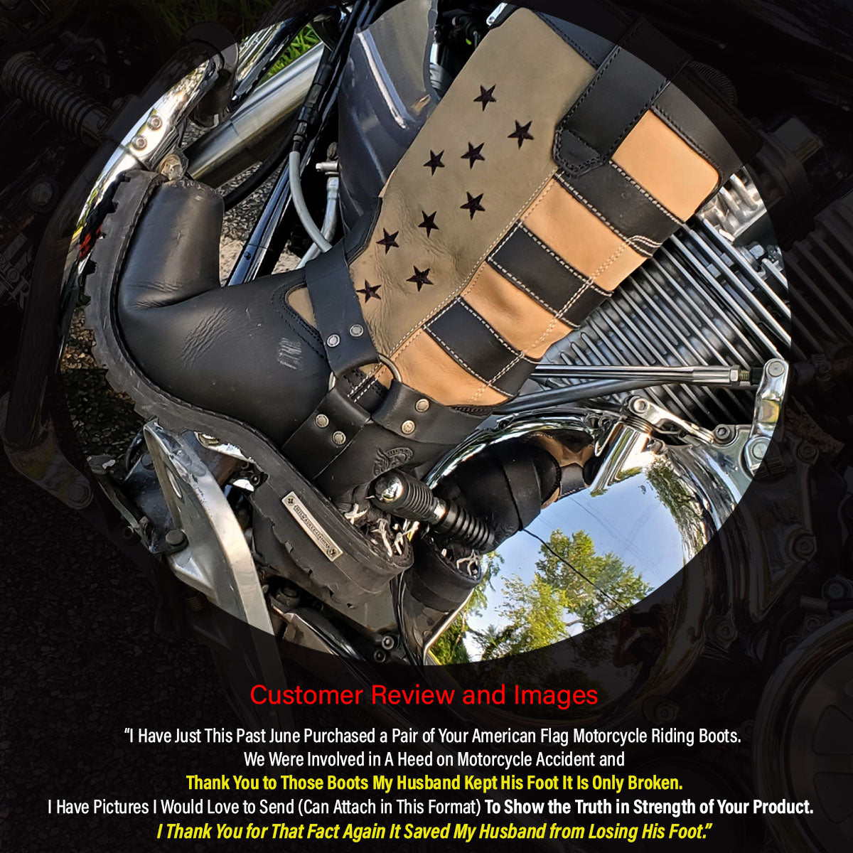 Milwaukee Leather Men's Stars and Stripes Black with Tan Motorcycle Rider Harness Boots MBM9045
