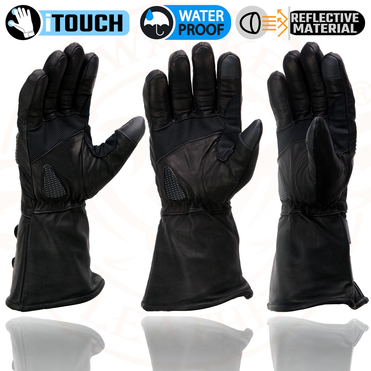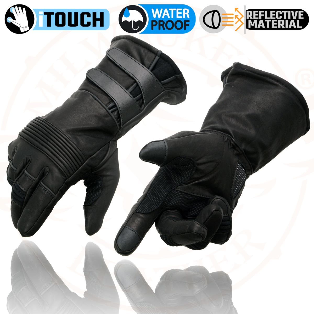 Milwaukee Leather MG7550 Men's Black Cowhide Leather Gauntlet Motorcycle Hand Gloves w/ X-Long Cuff i-Touch Screen Waterproof