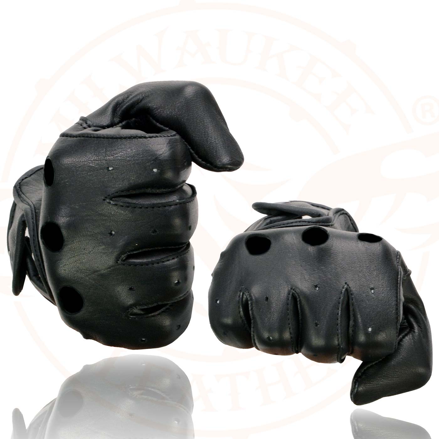 Milwaukee Leather MG7720 Women's Black Perforated Deer Skin Leather Motorcycle Gloves w/ Breathable Open Knuckle