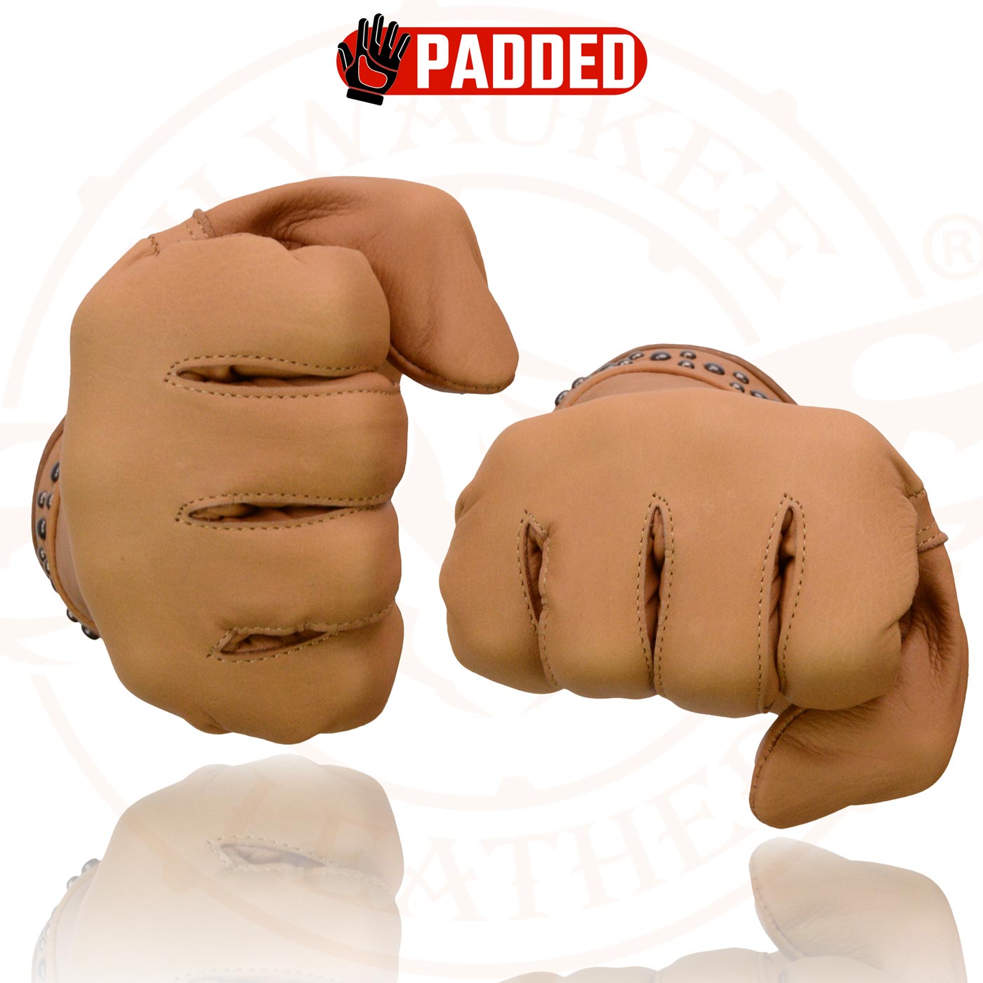 Milwaukee Leather MG7760 Women's Saddle Leather Gel Palm Lightweight Motorcycle Hand Gloves W/ Stylish ‘Wrist Detailing’
