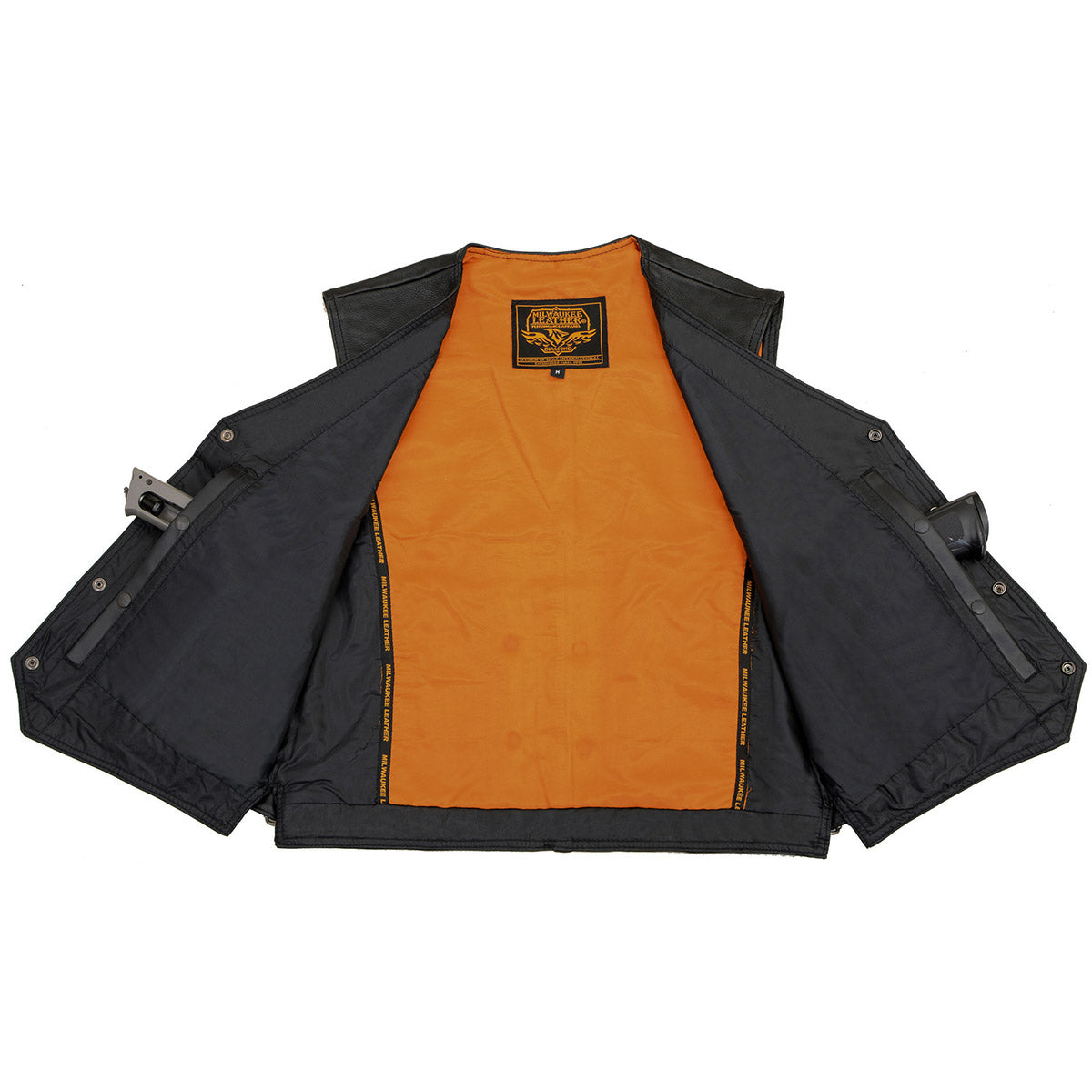Milwaukee Leather ML1927 Men's Black Premium Leather Side Buckle Motorcycle Rider Vest w/ Eagle Nickel Snaps Closure