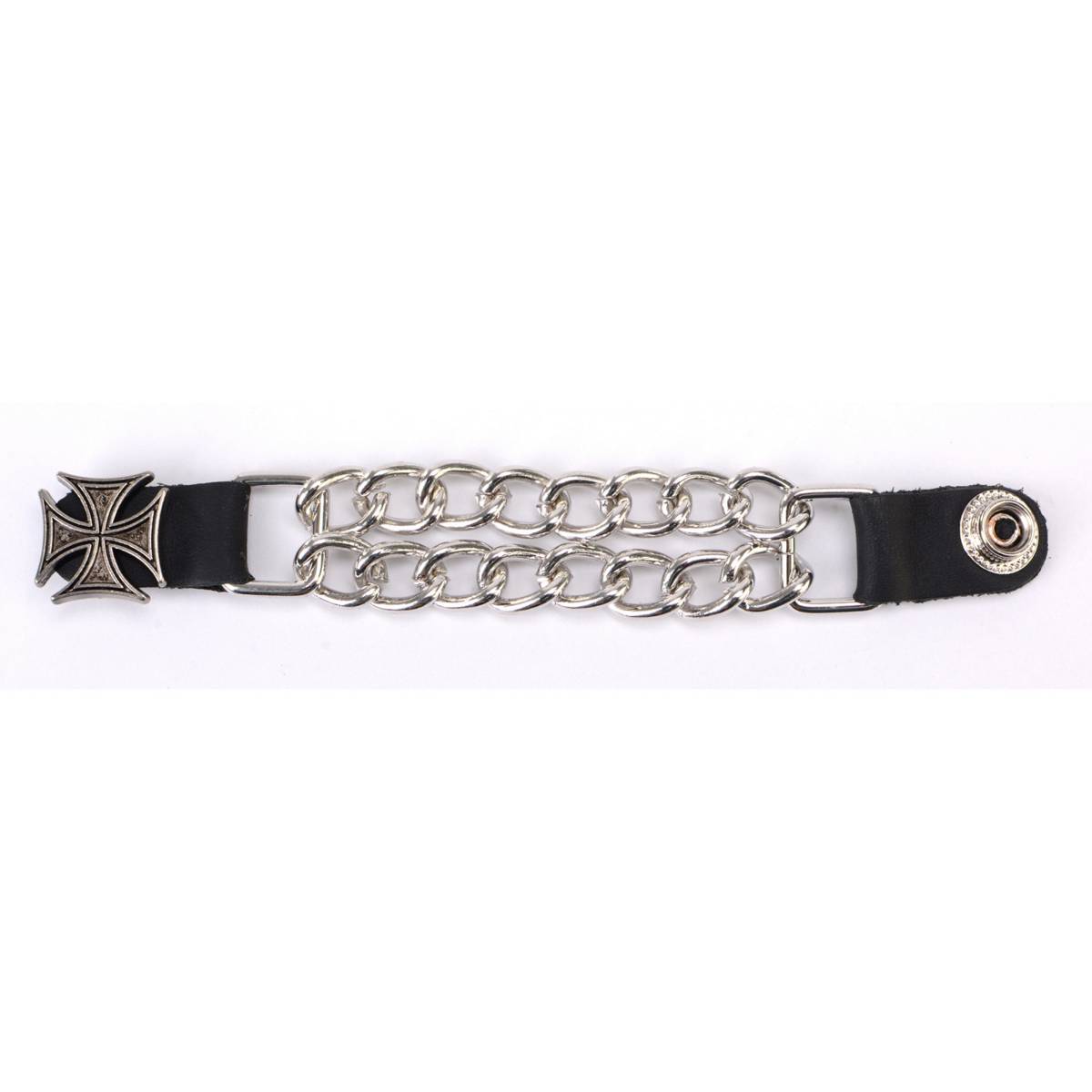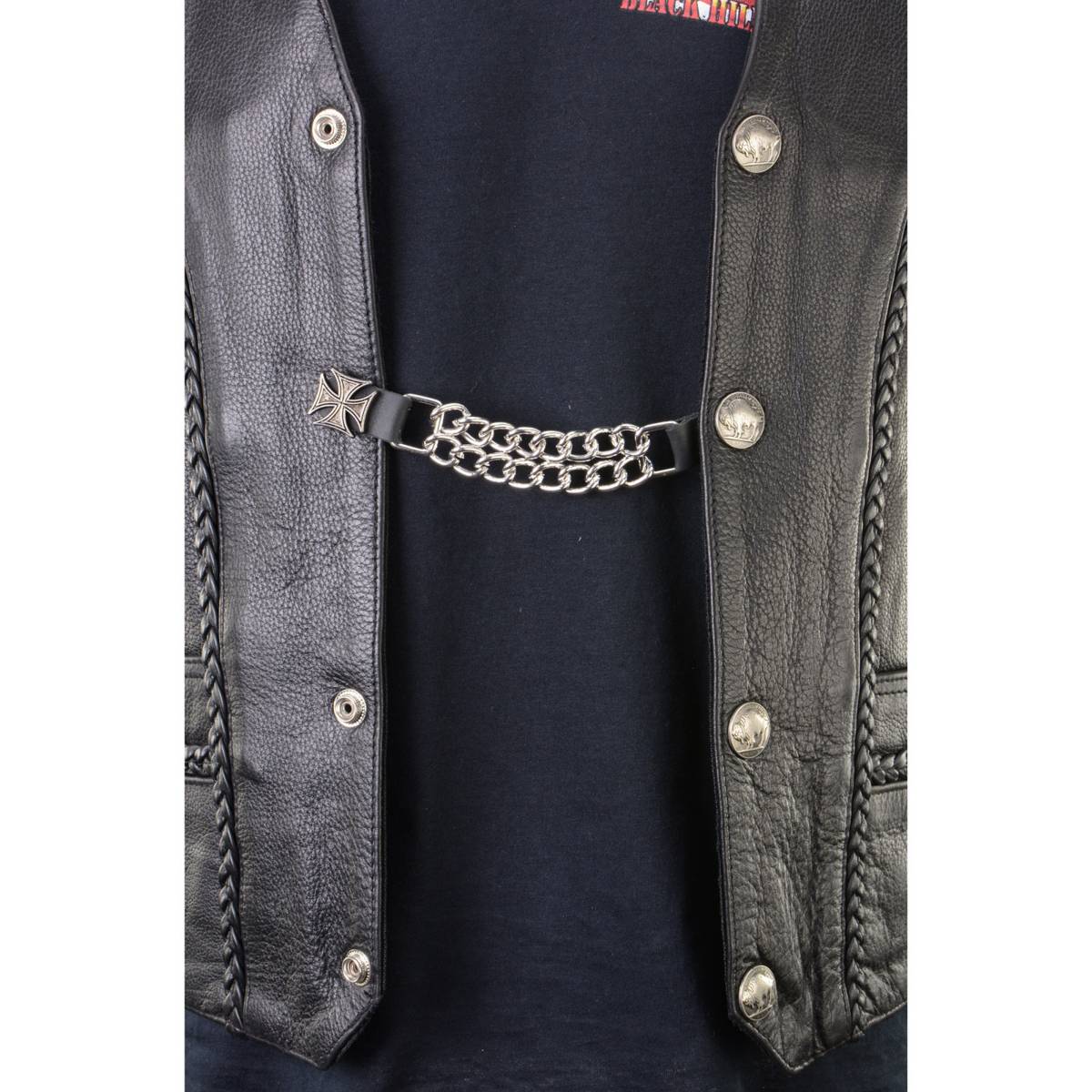 Milwaukee Leather MLA1020-Single Iron Cross Vest Extender Double Chrome Chains w/ Genuine Leather 4" Extension